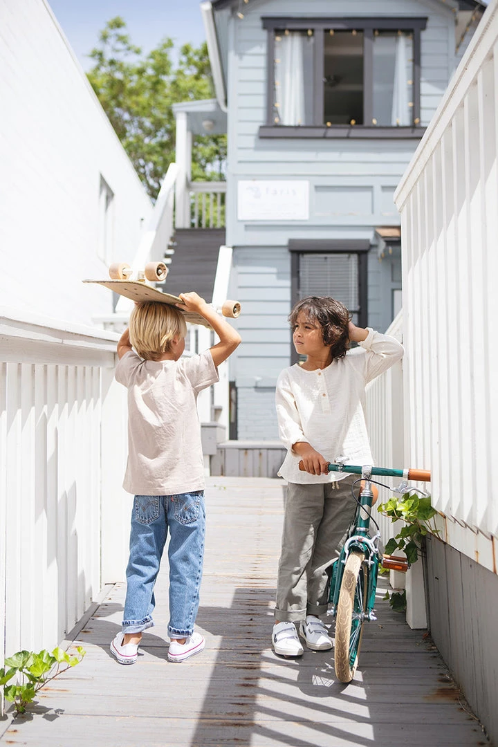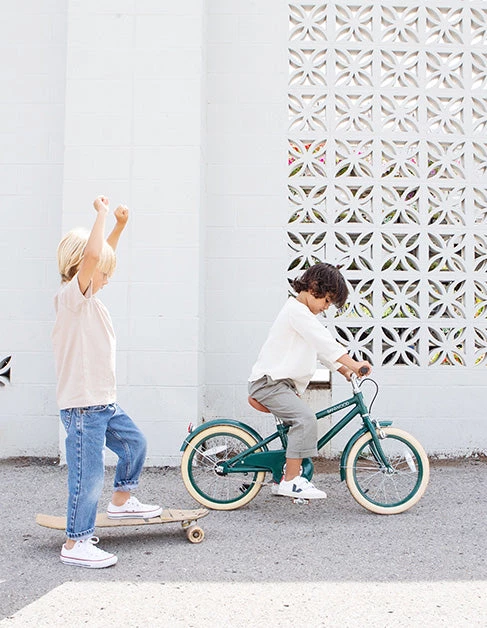 Inspired by vintage bicycles for adults and influenced by Scandinavian design, the Banwood Classic features a lightweight alloy frame in green finish. And your mini me cyclist will be the coolest kid on the block with the bike sporting Banwood’s brown faux leather saddle and grips in matching colors, Banwood’s unique rosewood vintage pedal, cream 16” tires and a detachable wicker basket in rattan – perfect for packing in the essentials (think lunch, water bottle and favorite toy!) for a day’s adventure.