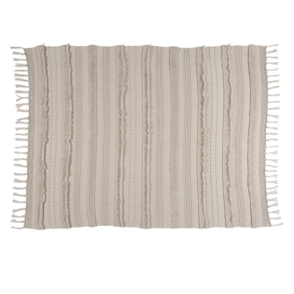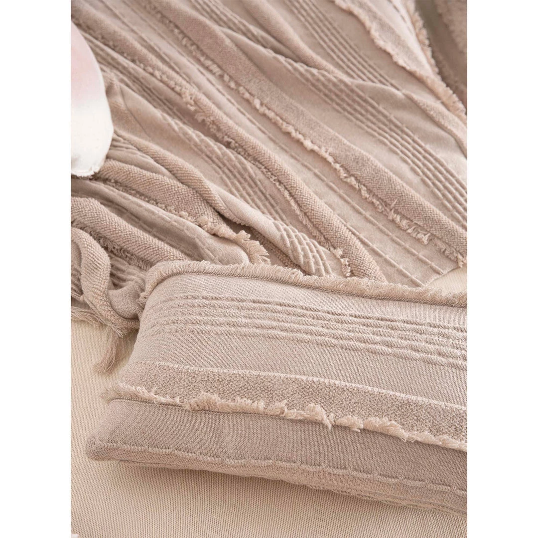 An original blanket is part of the Lorena Canals Early Hours collection! Perfect for the throw for the sofa or the edge of the bed and will give a cozy touch to any room or lounge. 100% cotton knitted in tricot and Dune White color with fringes and different textures.