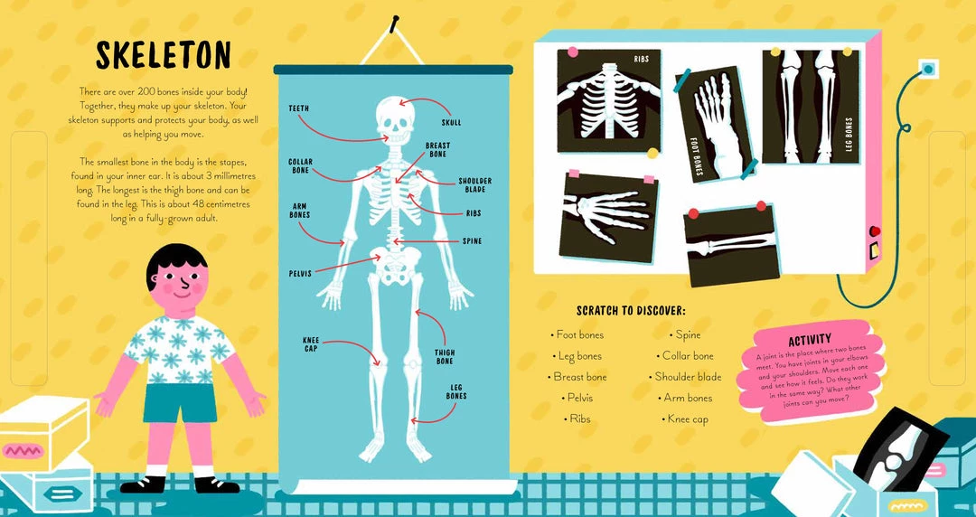 See the human body as never before, in this unique scratch-and-discover format. Every spread addresses a new theme, teaching little ones about our skeletons, muscles, brains, and more. An appealing, interactive first introduction to the natural world we carry around with us all the time, with activities to help understanding.