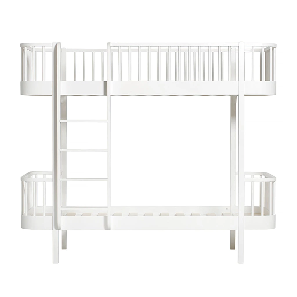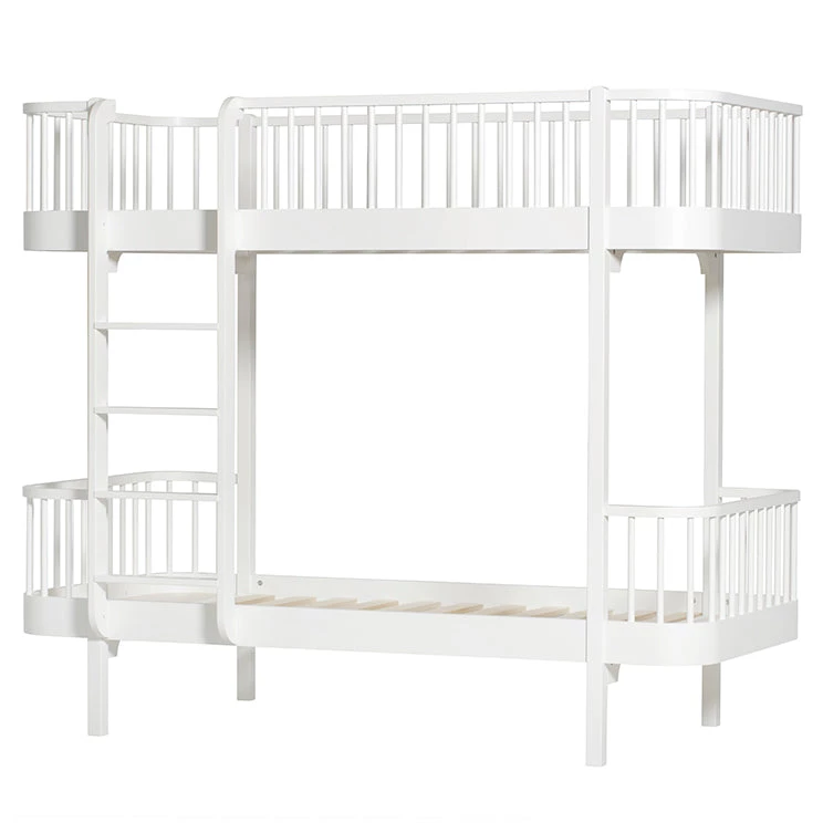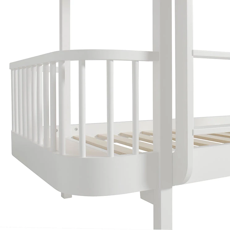The Oliver Furniture bunk bed from the Wood Collection is a classic beautiful bed with a soft warm look from the 50´s. The Wood bunk bed is unique with bars and rounded corners. The ladder is at the front for easy access to the top bunk models and is available in plain white or white with details in Nordic oak (white oiled). You can get additional pieces for this bunk bed which include with bed guard and bed drawer for storage for more information contact our sales team for a price. Please note that the ladder can be mounted only on the left side of the front and not on the right side.