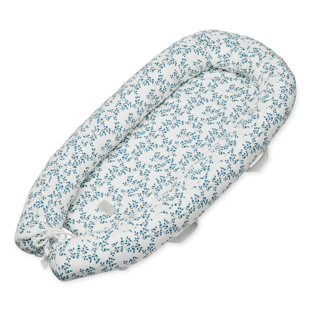 The baby nest can be used on the sofa, in the crib, on your double bed or when travelling – the four practical carry straps and the wooden piece at the bottom provide stability and firmness, so it is easy to move your sleeping baby.
