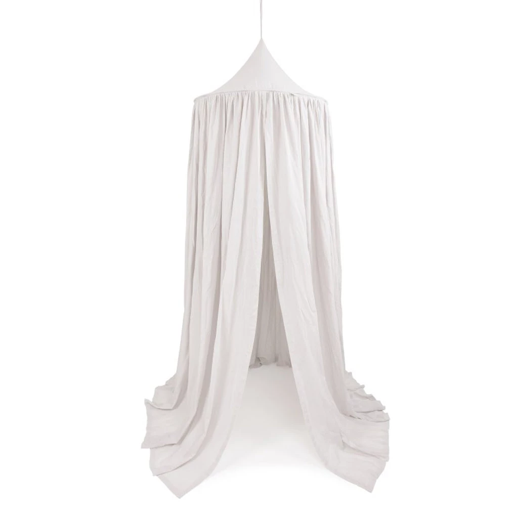 The canopy is made from a high quality Cotton material and its simple shape and flowing design will fit perfectly into any kids room theme. Inside the canopy itself, there is a loop to hang internal decorations such as a mobile or a lamp.