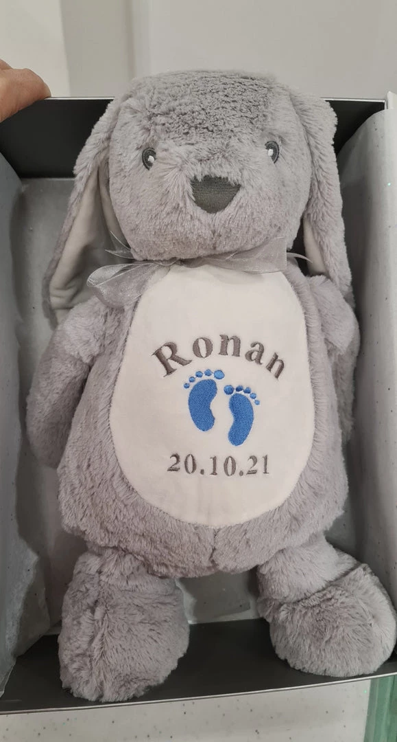 These adorable soft bunnies make an absolutely fabulous keepsake for your little ones to keep forever .They are beautifully embroidered and available in 2 design options for a boy or a girl and created in our showroom here in Dublin