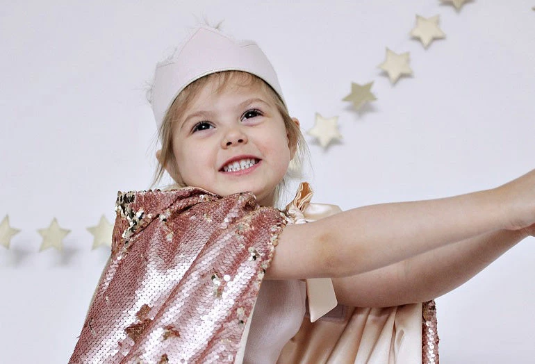 This personalised party crown is a charming gift for a girl or boy who loves to have fun. The crown is a perfect for little ones who love to dress up as a fairy, princess or king.