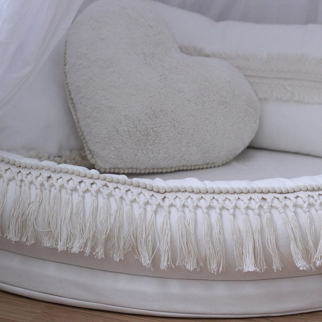 This Beautiful Cotton & Sweets Plush Heart Boho Pillow in Vanilla is part of their new Boho collection and complements the full range of canopy’s and playnests in the range.