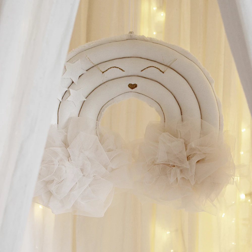 The decorative Grace Arc-en-ciel mobile in Vanilla will bring a fabulous charm to your child’s room. The sight of a swaying rainbow soothes children and helps the baby fall asleep. Decorative rainbow-shaped mobile also looks great under a canopy. Cotton & Sweets canopies are equipped with a special loop under the dome, which enables trouble-free installation of this type of decoration. Hang the Rainbow in the window or over the bed, so that every morning it positively influences your child for the new day!