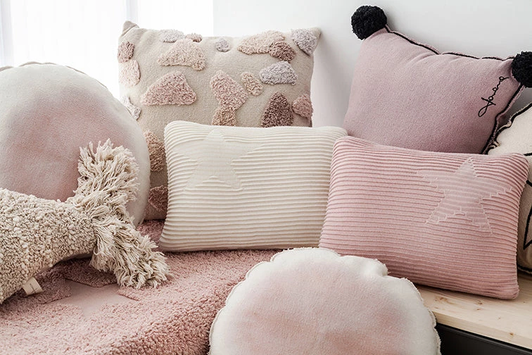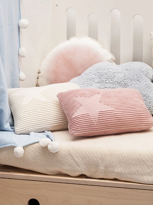 On the outside of the fabric itself the shape of a star in smooth knit jacquard has been created on each side, in contrast to the rest of the weave which forms elegant waves. This cushion, thanks to its stylish design and pale colors, fits in perfectly in any decorative style, be it romantic, contemporary, casual or classical, and in any room in the house: kid’s room, living room, dining room, terrace or garden… Match it with our Hippy star rugs and matching blankets