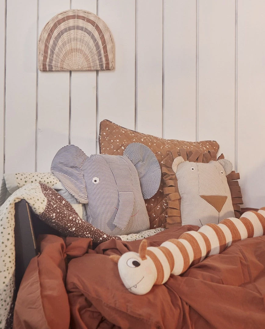 Erik Elephant from OYOY has a sweet and playful expression in beautiful bluish shades. The elephant is made of 100% organic cotton and is made in a denim quality. Erik has a soft polyester filling, so he is nice and soft to cuddle and would look great in a nursery or Childs room.