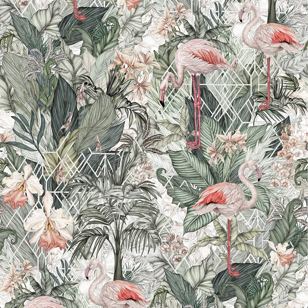 This Jimmy Cricket wallpaper is inspired by the 1920’s Art Deco movement the flamingo wallpaper depicts hand illustrated motifs in lush greens and pale pink tones. This wallpaper design would be perfect for a nursery or children’s room that will inspire the imagination and promises to bring the outdoors into the home for a truly fresh finish.