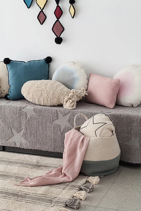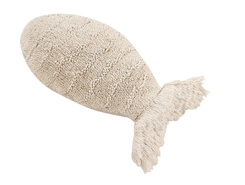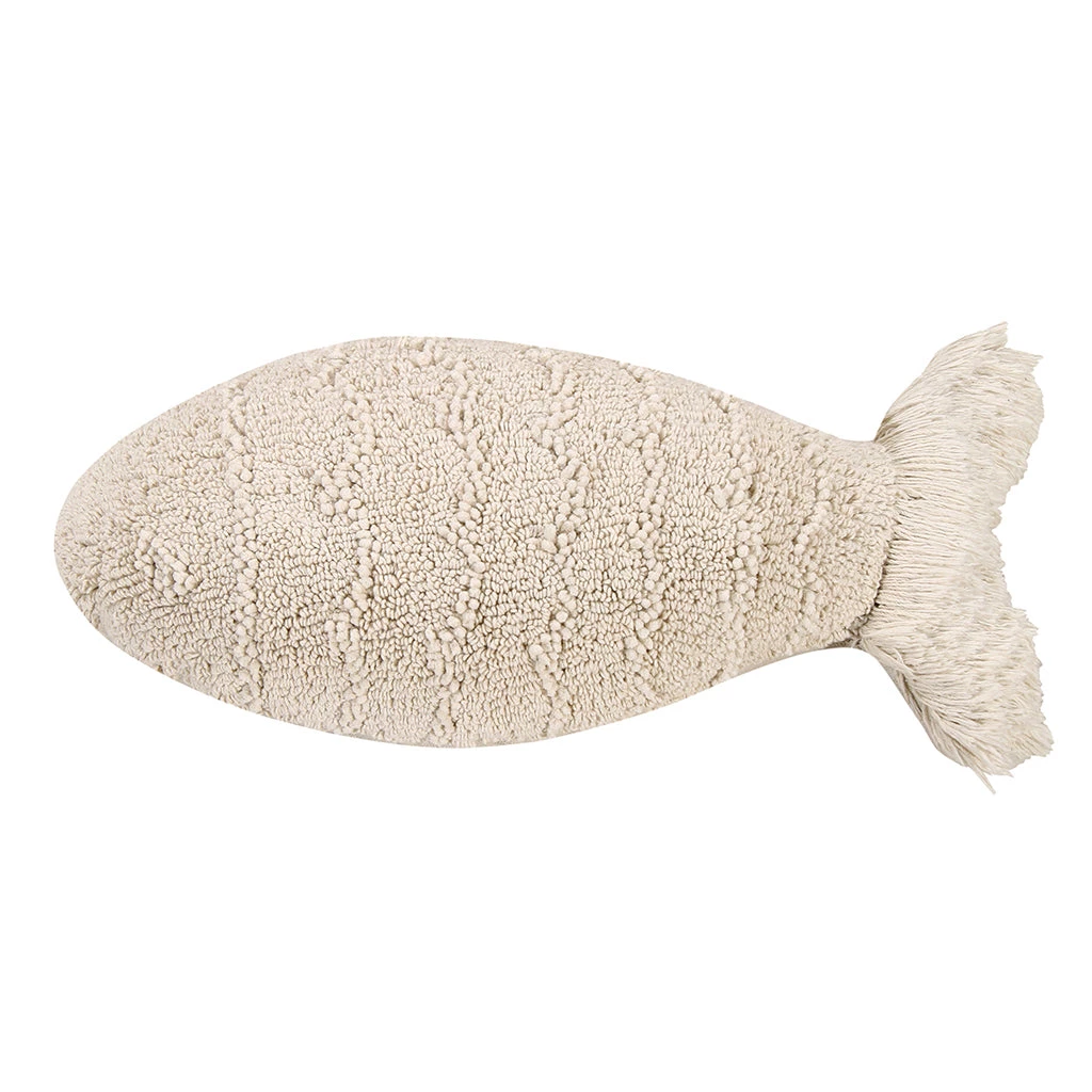 Fun in his own right this little fish wants to be your favorite cushion! This Lorena Canals machine washable cushion with fish-shaped outline is made from tightly-woven 100% cotton on the outside and with 100% polyester filling of the finest quality.