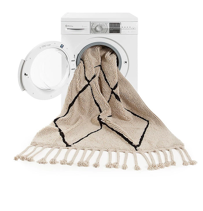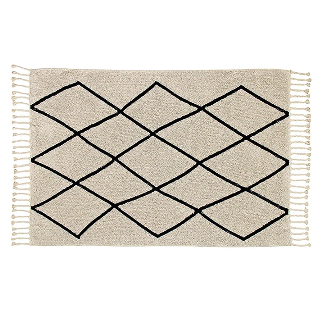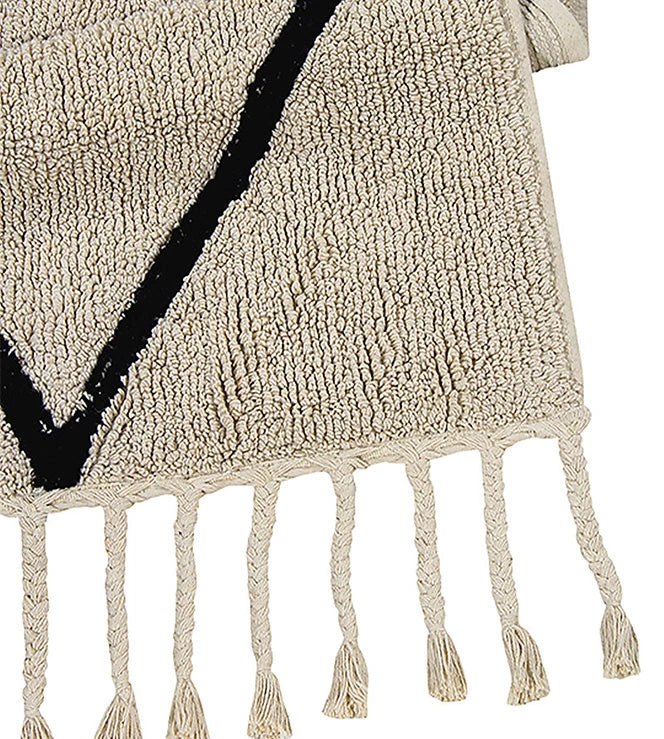Elegance and comfort for the trendiest corners of your home thanks to this cream Bereber piece from the Lorena Canals Black & White collection. In 100% cotton, machine-washable (conventional washing machine with 9 kg for 140×200 cm), perfect in a living room, dining room or bedroom. The black fine lines create diamond shapes on a beige background, giving this rug a timeless elegance. Handmade, it is safe since natural dyes are used and it is light, soft and flexible since it is made only from cotton.