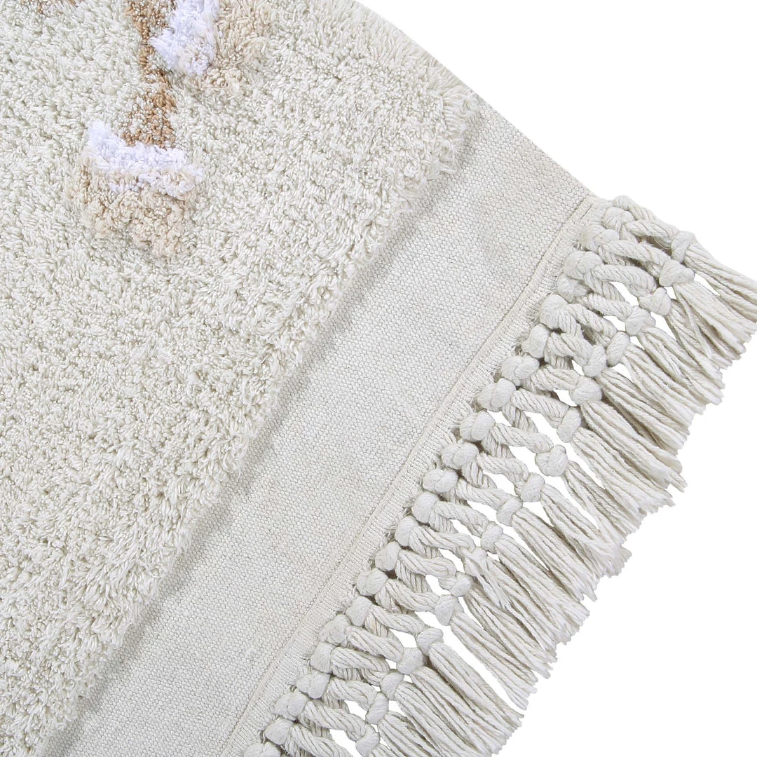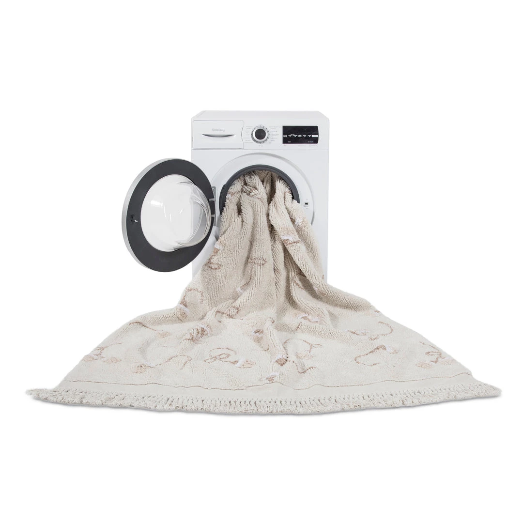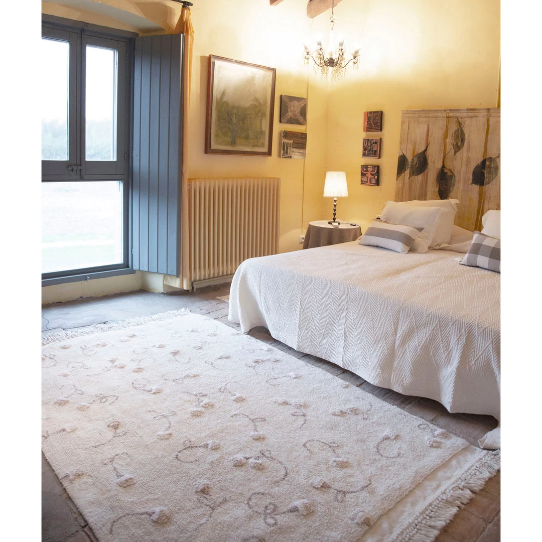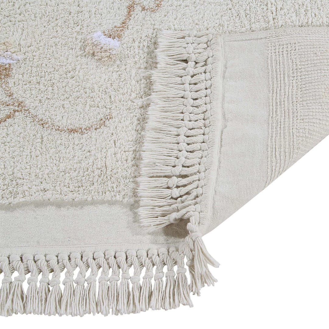 This Lorena Canals English Garden washable rug in Ivory color has been inspired by the natural colors and textures from the botanical gardens. Yarns in a mixture of soft colors has been used to create some of the details, such as the stems of the flower. Every woven flower of this artisan rug has been carefully perfected with scissors by their craftsmen.