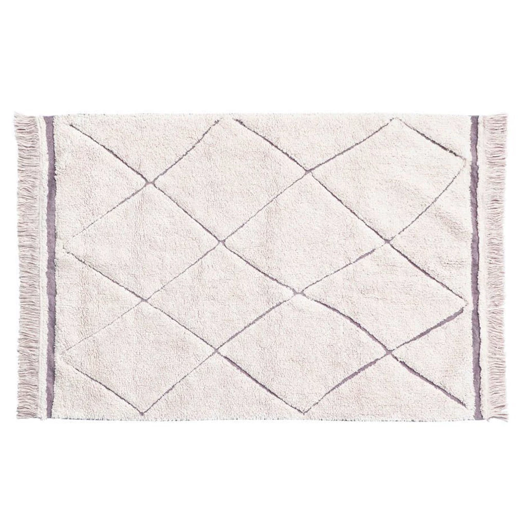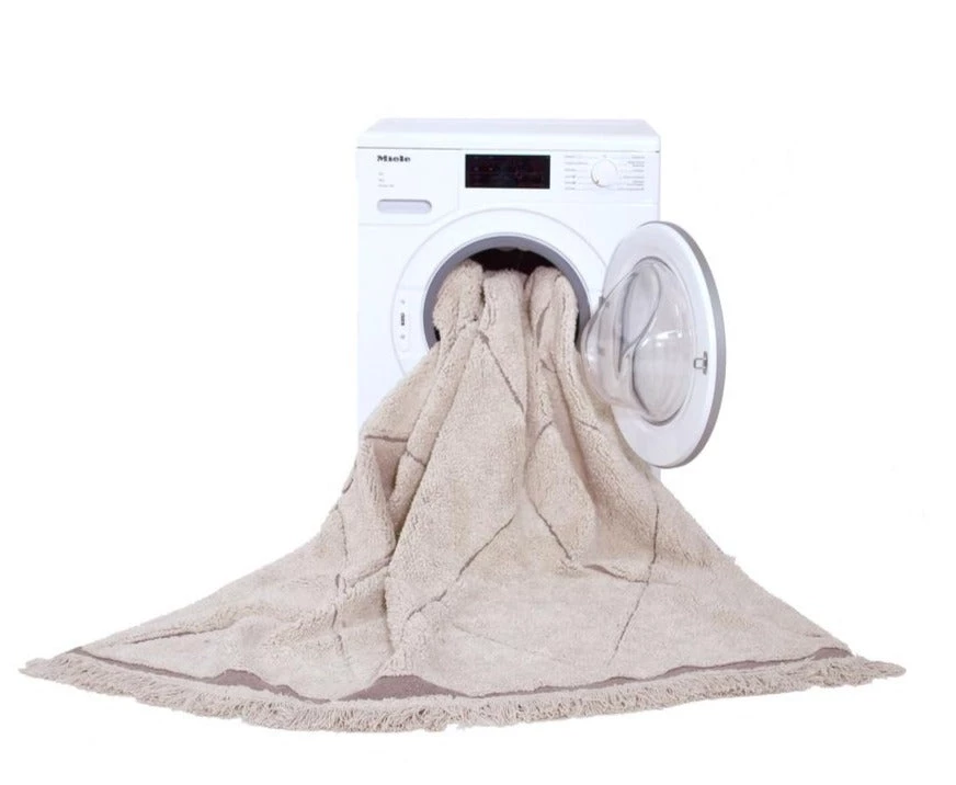 An all-time favorite from Lorena Canals is their NEW Bereber design with a twist! Made leaving bare areas of the recycled canvas visible to define the criss-cross pattern with a debossed effect and finished with fringes at the edges, blending both the natural and recycled cotton yarns