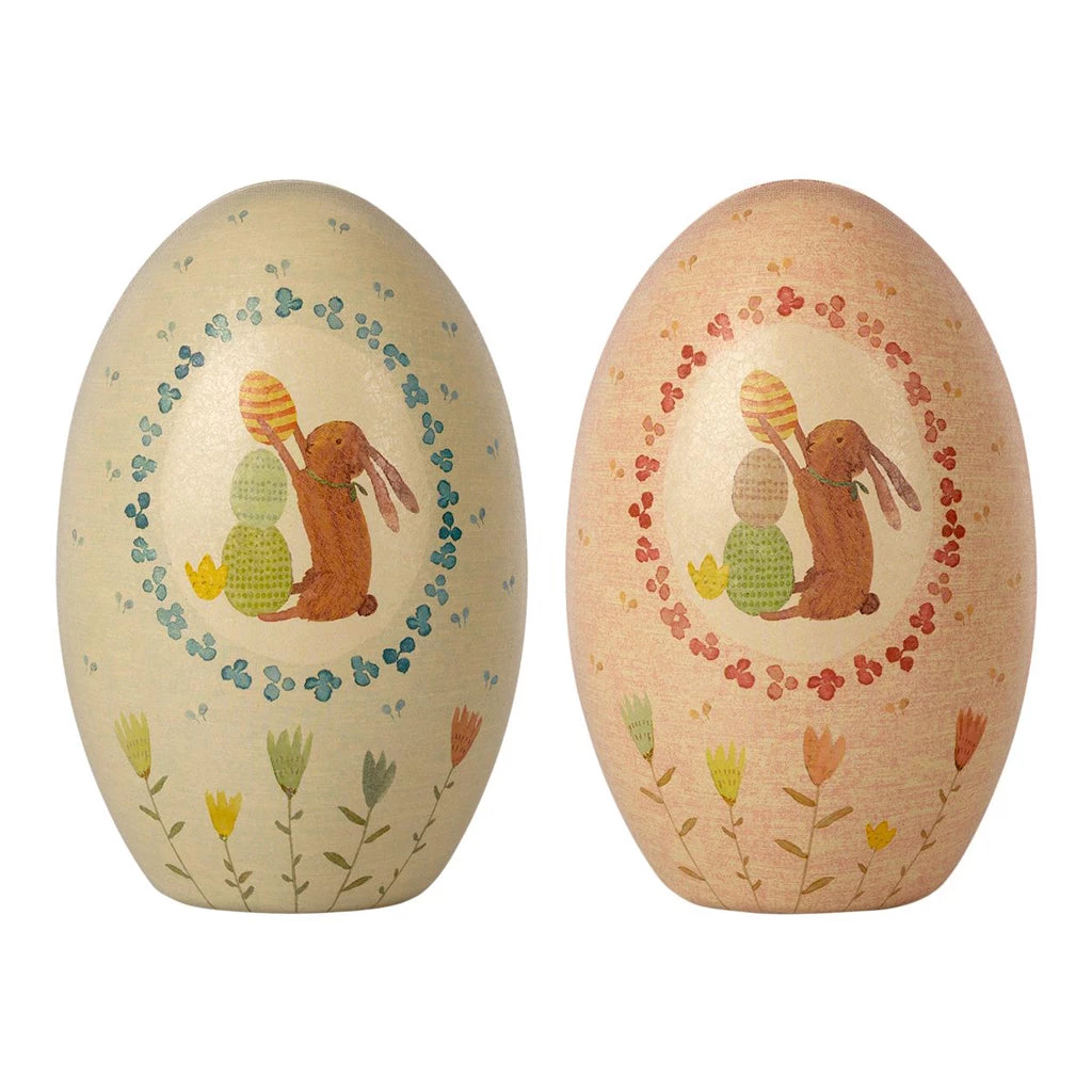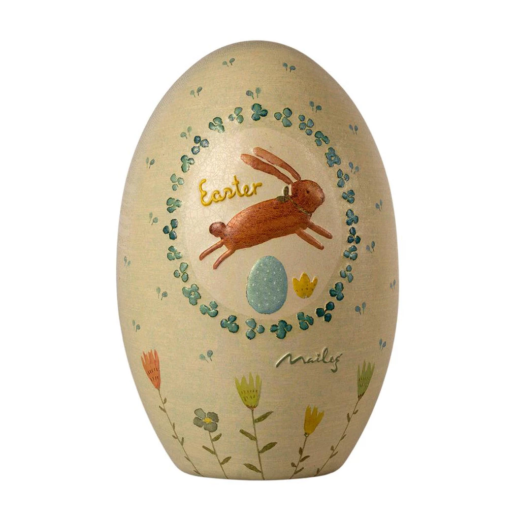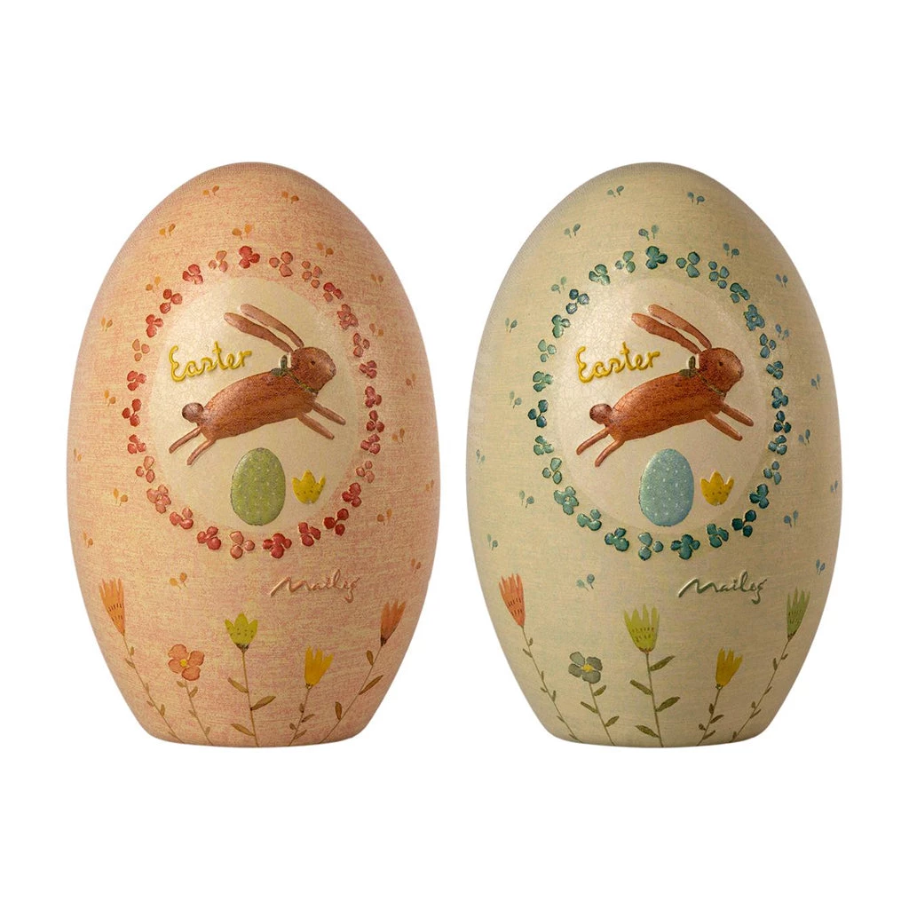 It is an old tradition to bring an Easter egg as a present for the holidays. These metal eggs are decorated with Mailegs unique drawings and can be filled with small gifts like the mini bunnies or baby maileg mice. The metal eggs complies with the food certificate standard.