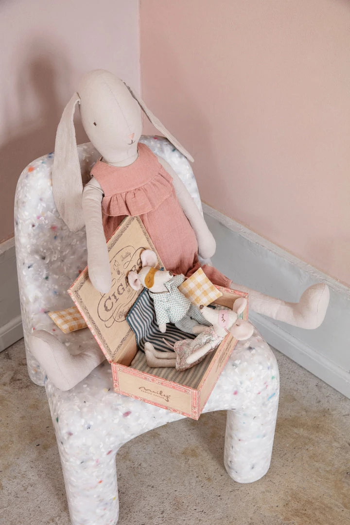 These adorable Mom and Dad from Maileg are wearing their eye masks and beautiful nightwear. The cigar box is a perfect bed for a good night’s sleep and sweet dreams.