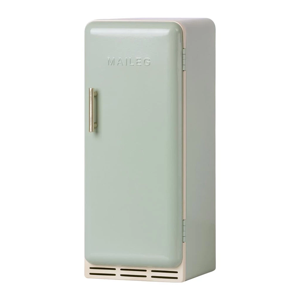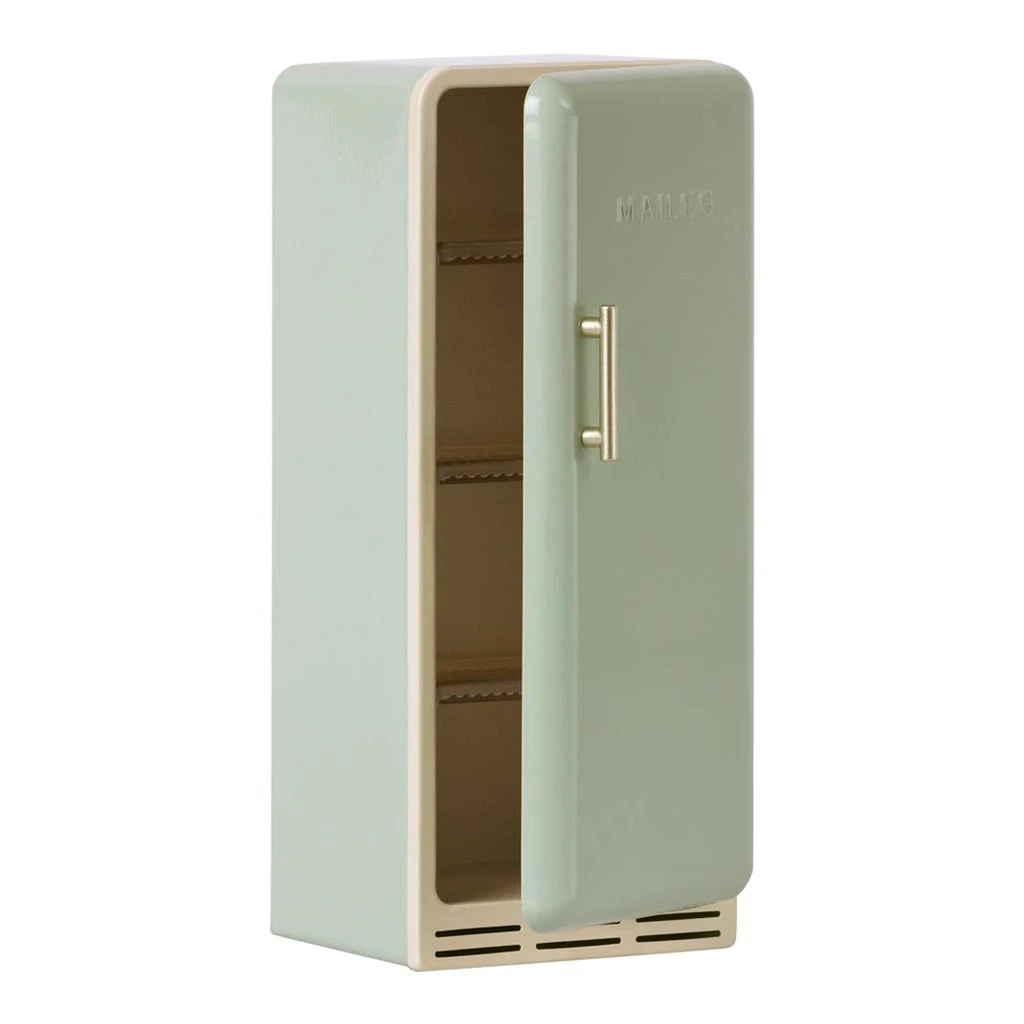 An old fashioned fridge that fits perfectly into the Maileg House of miniature dollhouse. The fridge is made in metal with magnetic lock and frosted shelves inside. A great addition to this fridge is our Miniature grocery box. Fits perfectly in the dollhouse and part of the SS21 Collection.