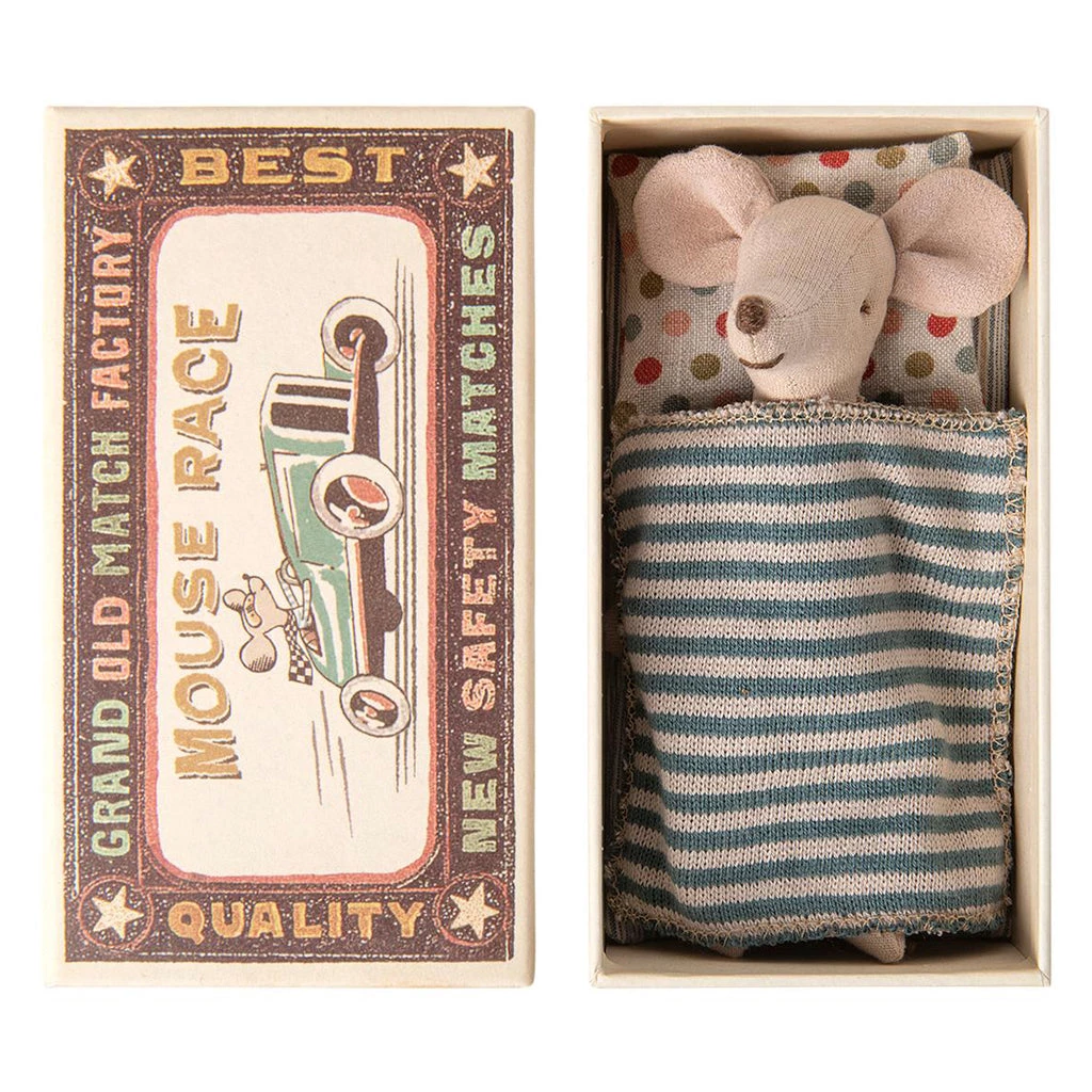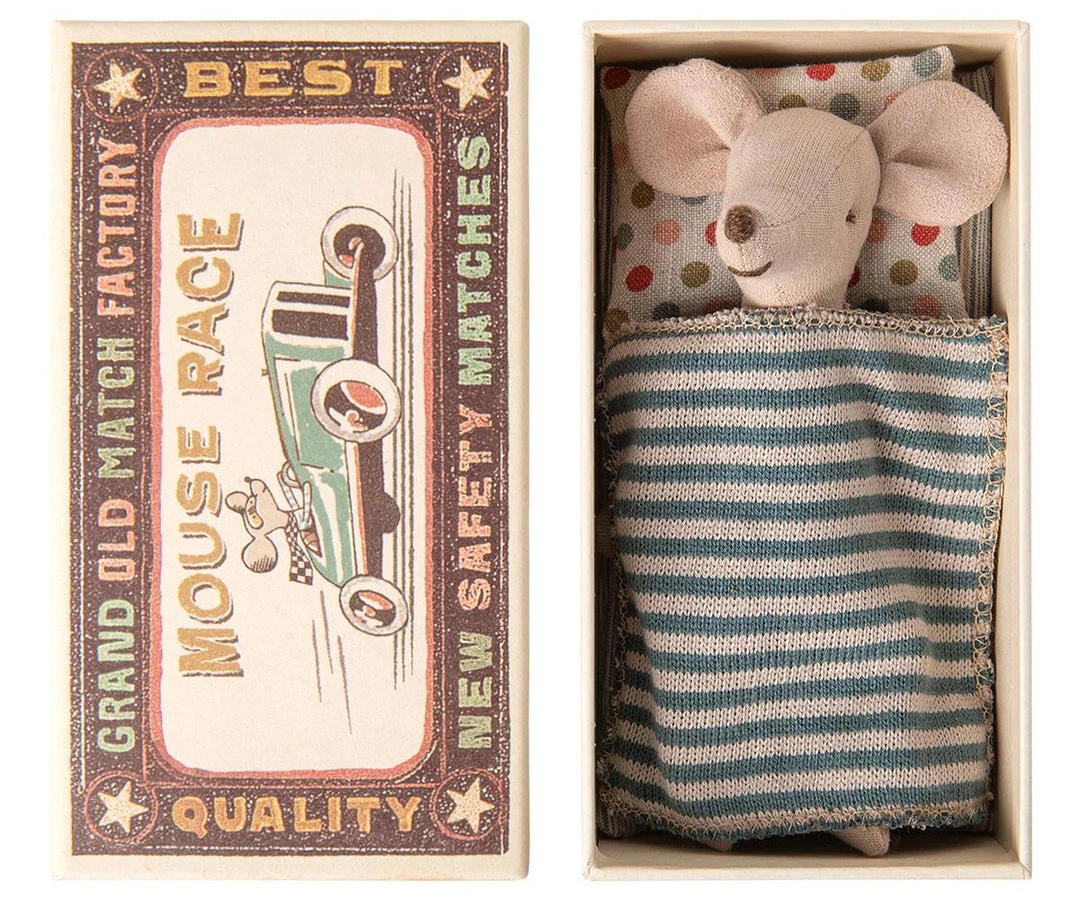The Maileg Big brother mouse is too cute with his small pants on. His bed is always ready and he sleeps tight in his little matchbox. The beautiful bed linen is made of soft fabrics with beautiful print. This is part of the new 2020 collection