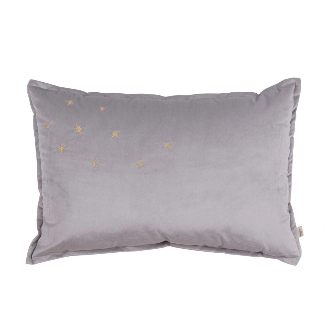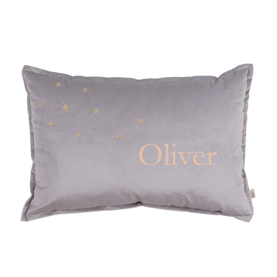 This beautiful decorative pillow in grey is made of a luxuriously soft velvet & decorative with gold embroidered stars and can be personalised with a name.
