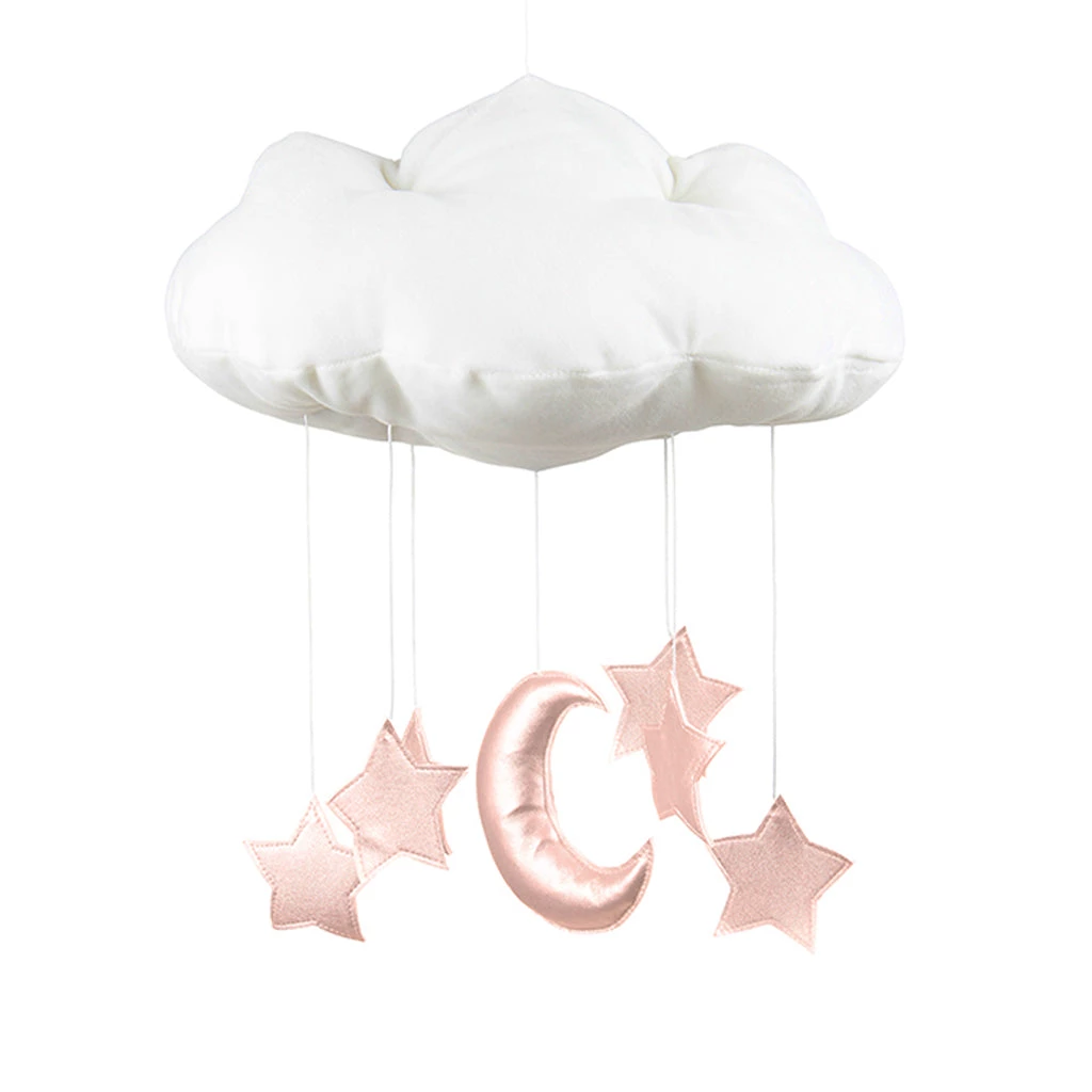 This beautiful cloud mobile made from cotton and velvet holds the sparkling moon and stars and will add a truly sensational and magical feel to any nursery or kids room.