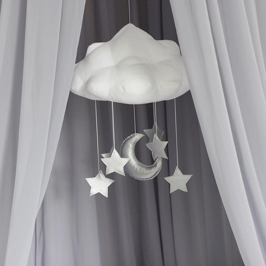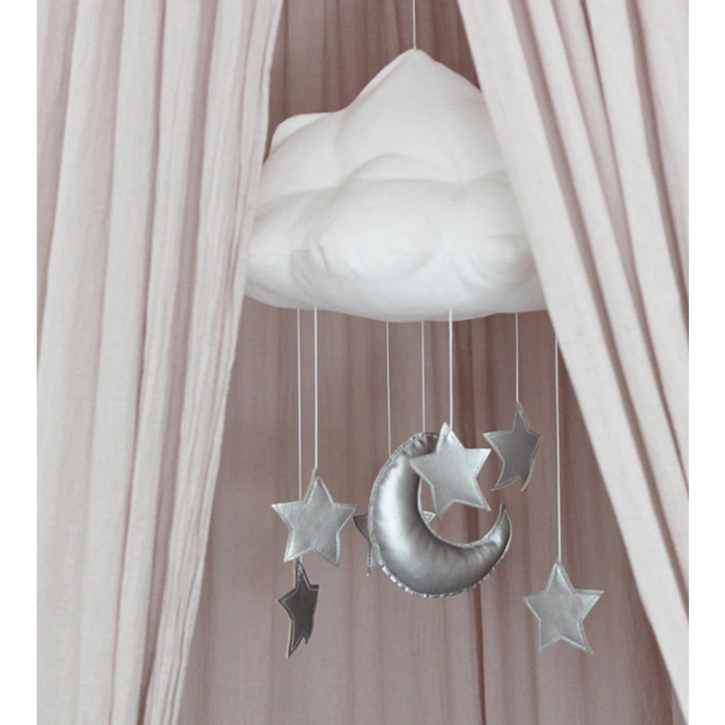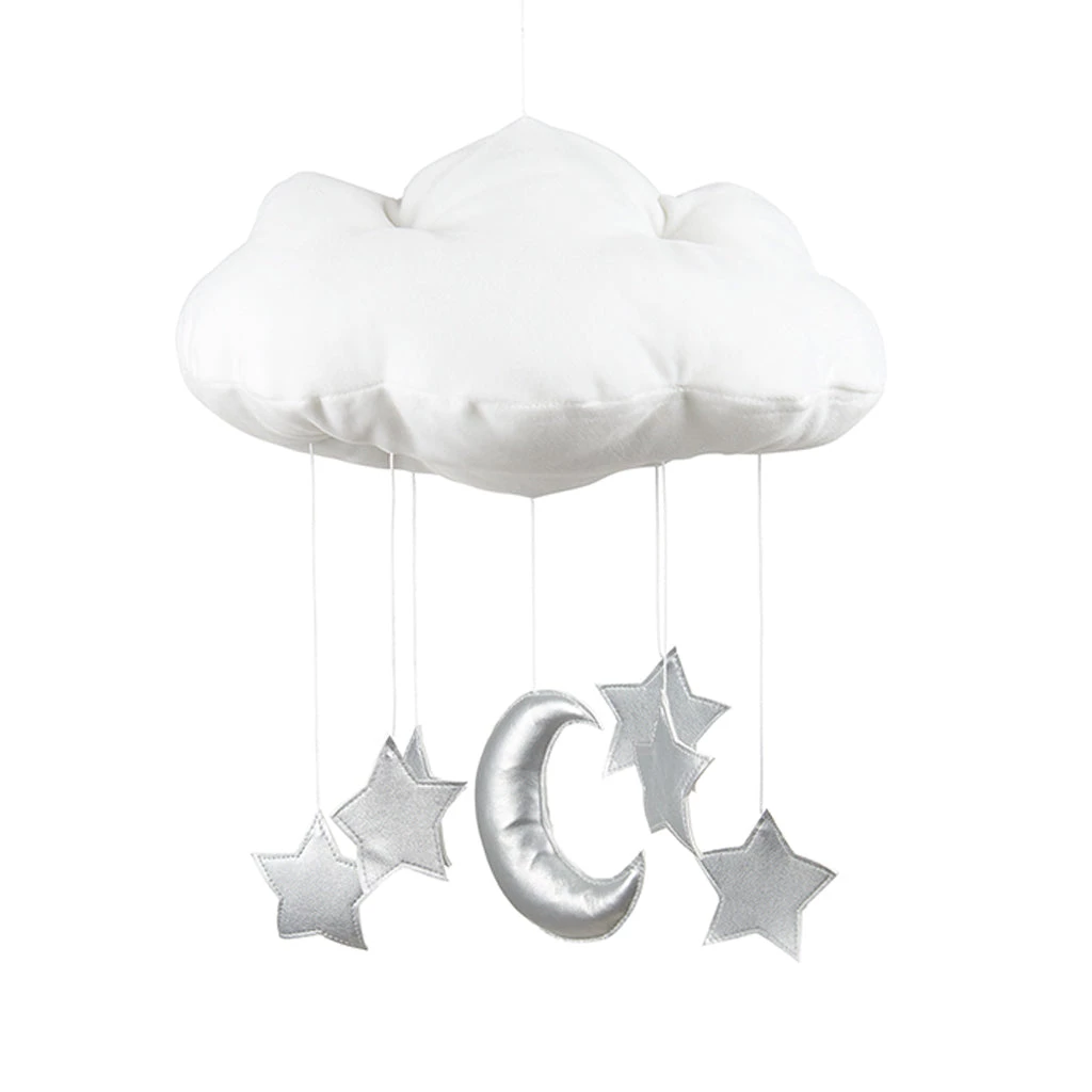 This beautiful cloud mobile made from cotton and velvet holds the sparkling moon and stars and will add a truly sensational and magical feel to any baby nursery or kids room.