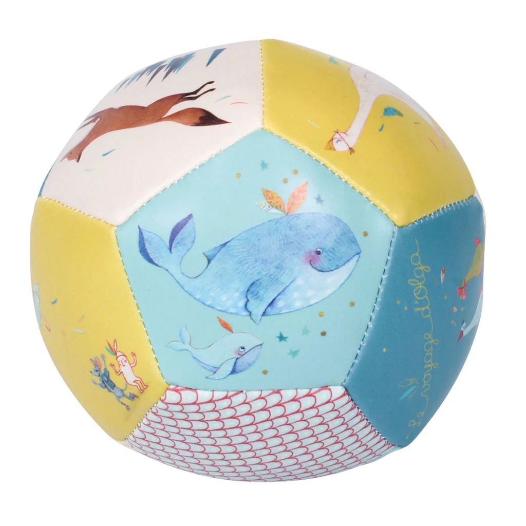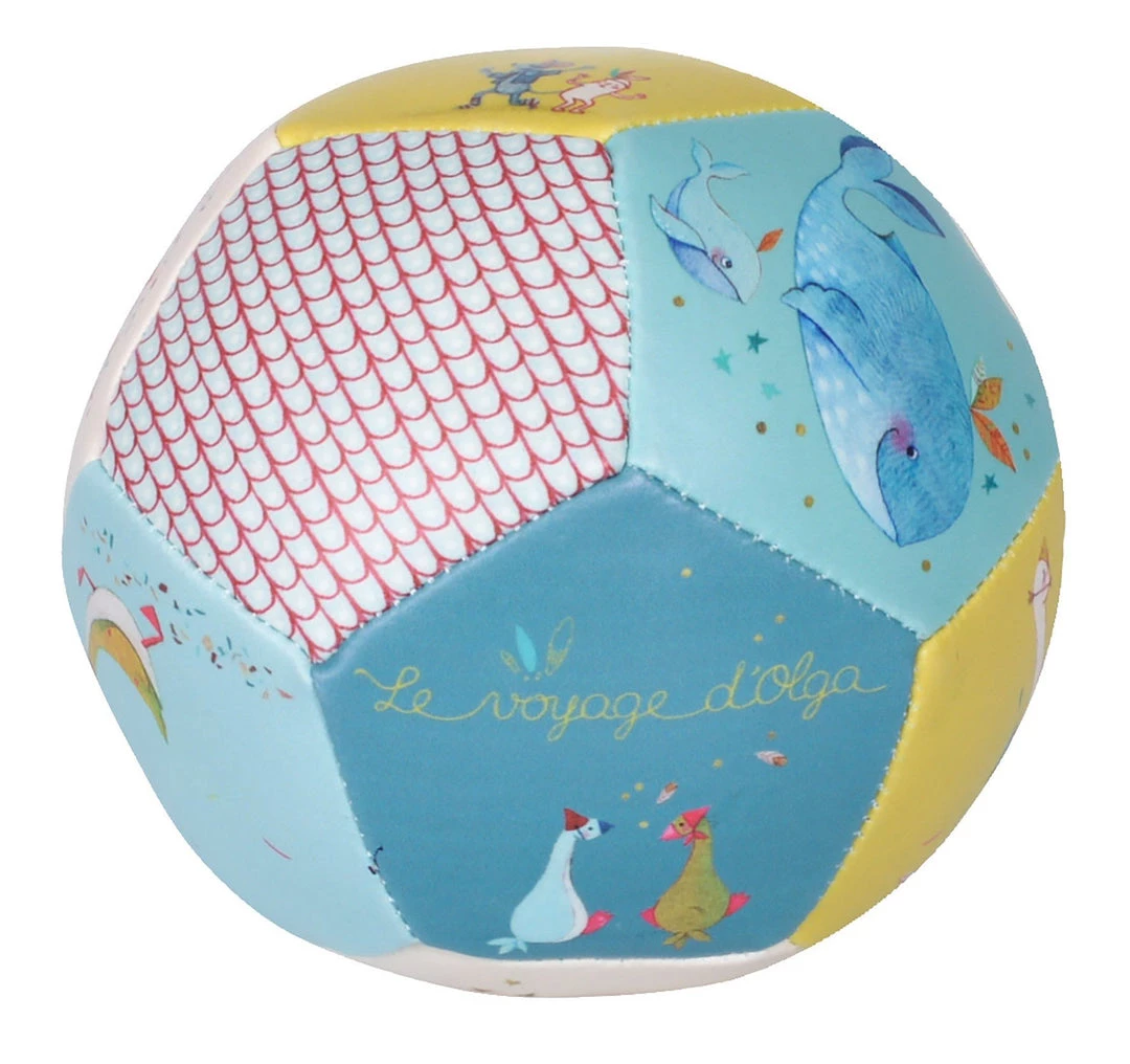 Le Voyage d’Olga – a collection by Moulin Roty takes you on a journey through distant lands and cute characters. A small, soft ball invites you to play. It trains your child’s motor skills and is printed with colorful Voyage d’Olga motifs
