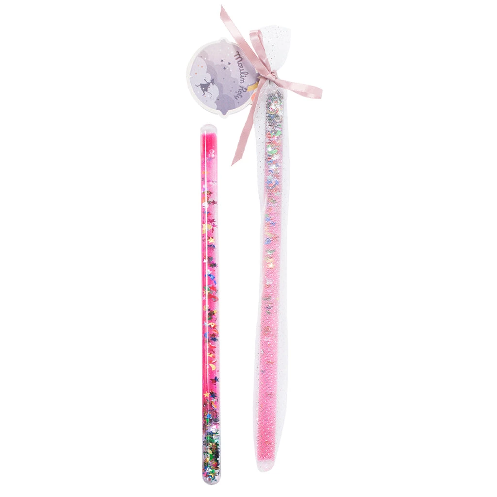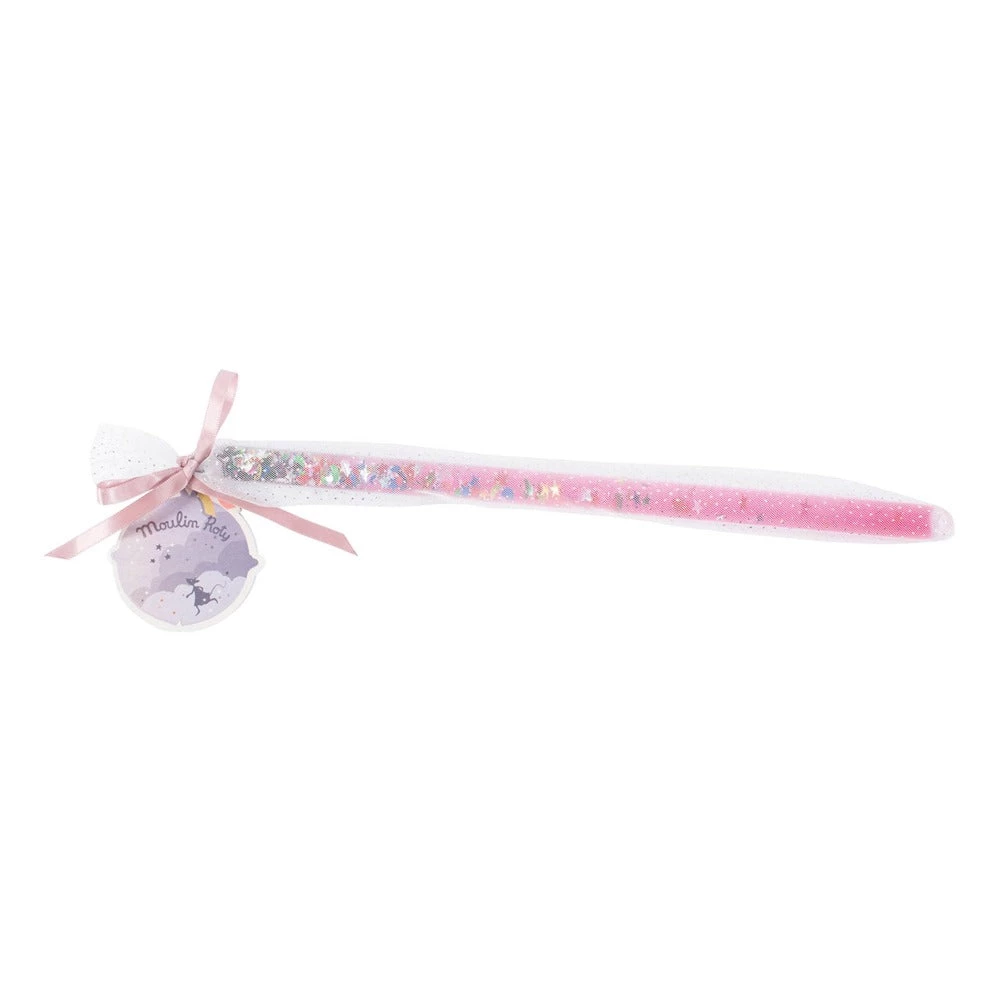 This super cool Moulin Roty magic glitter wand in pink is perfect for little fairies and magicians. Shake the wand and see the glitter and the shiny moon and stars particle swirl around… Wow, what an eyecatcher!