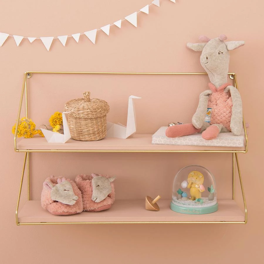 Lovely and soft Giraffe doll from Sous Mon Baobab collection by French toymaker, Moulin Roty. It has long legs and arms for baby to grasp, long ears and a tail to pull and a super soft body to cuddle. Variety of textures, a hidden rattle and beads provide sensory stimulation.