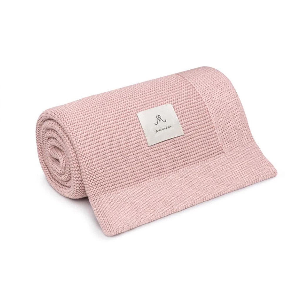 This super soft Scandinavian inspired breathable blanket in powder pink is suitable for use all year round. Knitted from certified bamboo yarn with the addition of cotton makes it perfect against baby’s delicate skin.