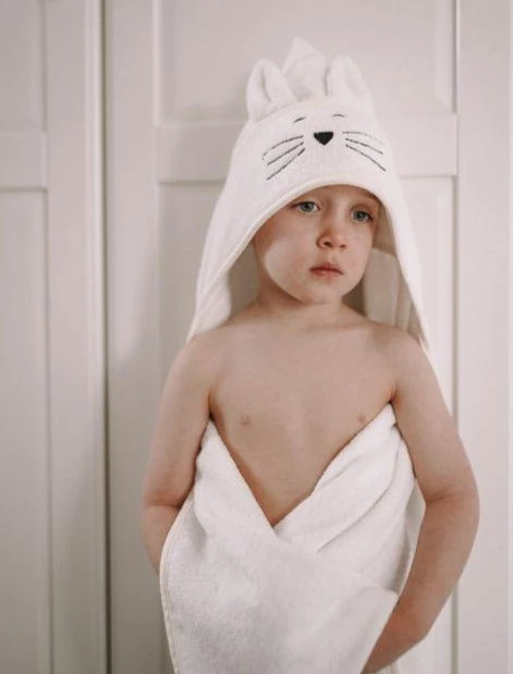 This ultra-absorbent and extremely soft bamboo towel has cute ears and embroidery kitten face on the hood. This adorable towel is super soft and highly absorbent making it perfect for everyday bathing, as well as the pool or on the beach. The towel is designed in a large size so suitable for toddlers up to 6 years