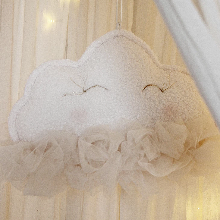 Decorative Cloud mobile Alexandra Nuage in Vanilla will bring a fabulous charm to your child’s room. The sight of the swaying cloud soothes children and helps the baby fall asleep. Decorative cloud-shaped mobile also looks wonderful under a canopy. Cotton & Sweets canopies are equipped with a special loop under the dome, which enables trouble-free installation of this type of decoration. Hang a Cloud at the window or over the cot, so that it will positively influence your child for the new day every morning!