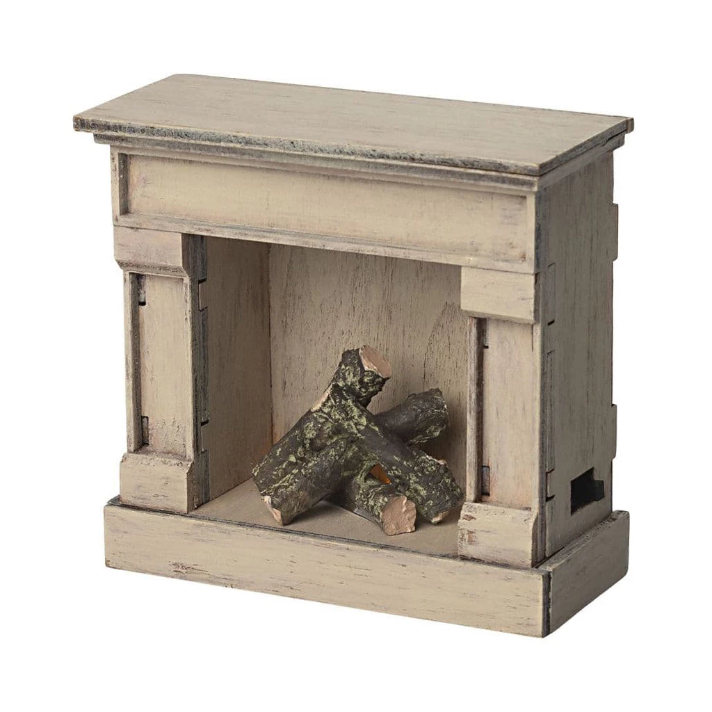 Use this Maileg wooden fireplace to warm your mices miniature home. It has an authentic look and a vintage finish. Remember to turn off the light when your friends go to bed. An adult can change the battery, which is non-rechargeable.
