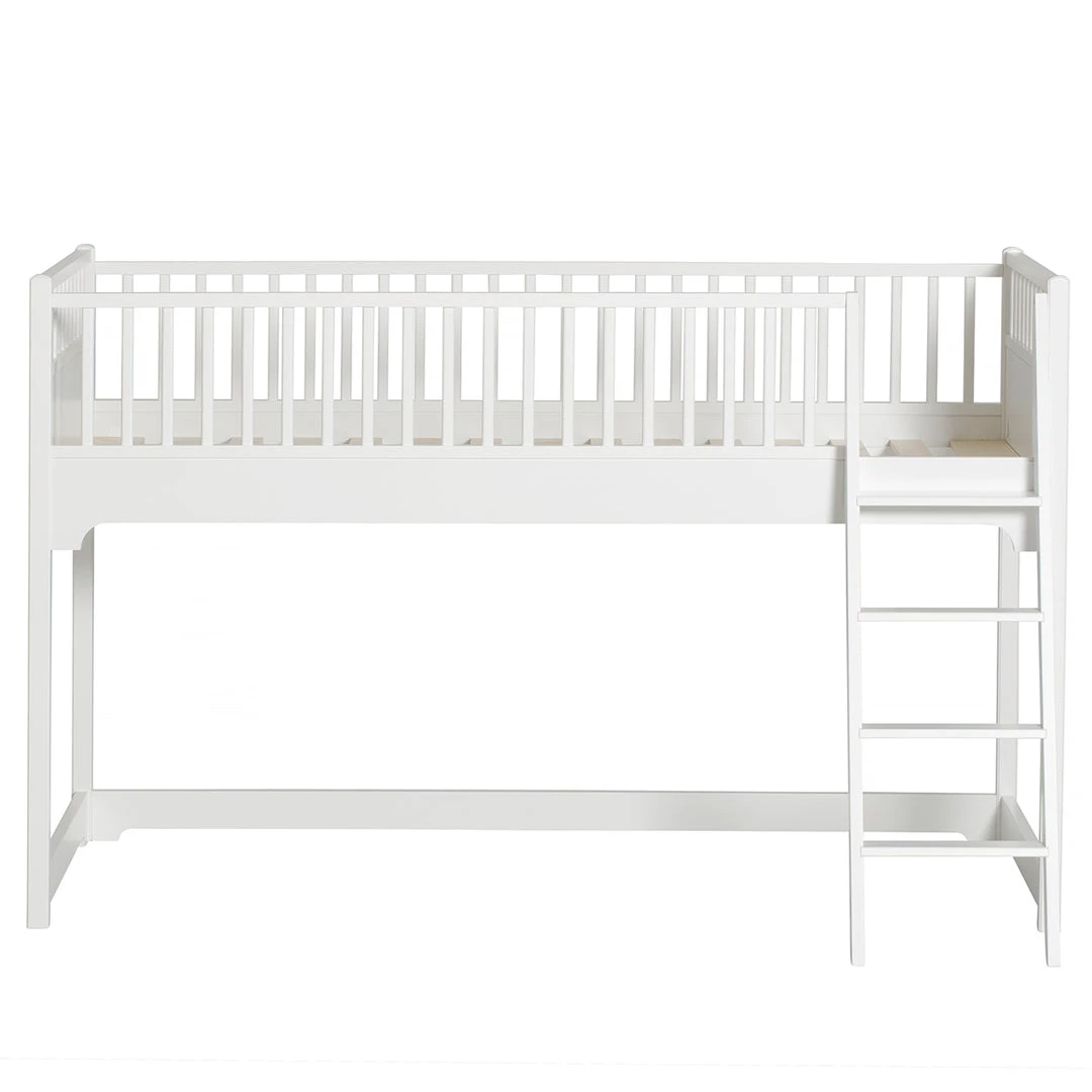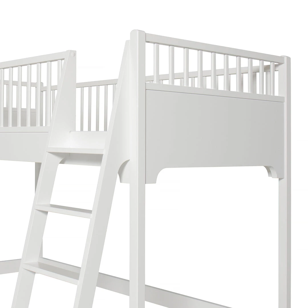 The Oliver furniture Seaside Low loft bed – designed to meet the child´s need for secure and safe sleep at night. In the daytime the low loft bed frame the space for imaginary play. The space underneath the bed gives the child the possibility to create a hideout, storage for toys or the best friend can sleep over on a mattress. The height of the bed invites for easy and close intimacy between child and parent.