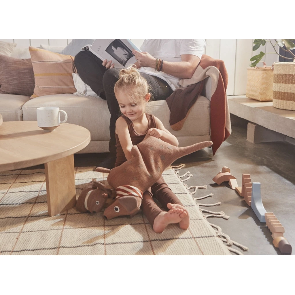 The OYOY Hunsi Dog is a cute dog that comes with two puppies, Coco and Max. There is room for the puppies in Hunsis tummy, which can be opened and closed with velcro closure. A playful and cute toy, that the little ones in the family will love or used as a nursery or kids room decor.
