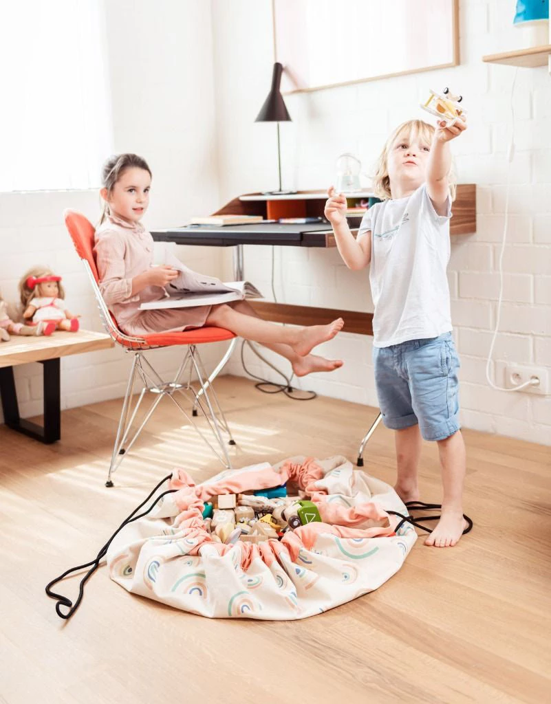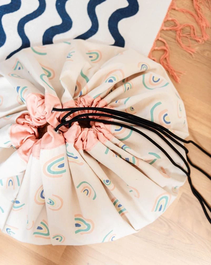 We all know that feeling. Toys under the bed, on the floor, in the dog’s basket, well the Play & Go bag is a simple and effective storage solution for the Nursery, Kids room or in fact anywhere in the home where there is clutter.