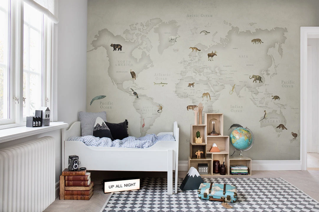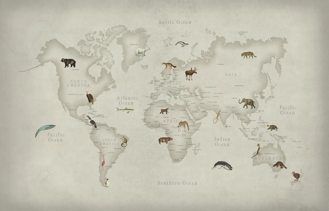 Going wild about animals? This wall mural features a world map with a selection of wild animals from different regions around the globe. Isn’t it grrrrreat?