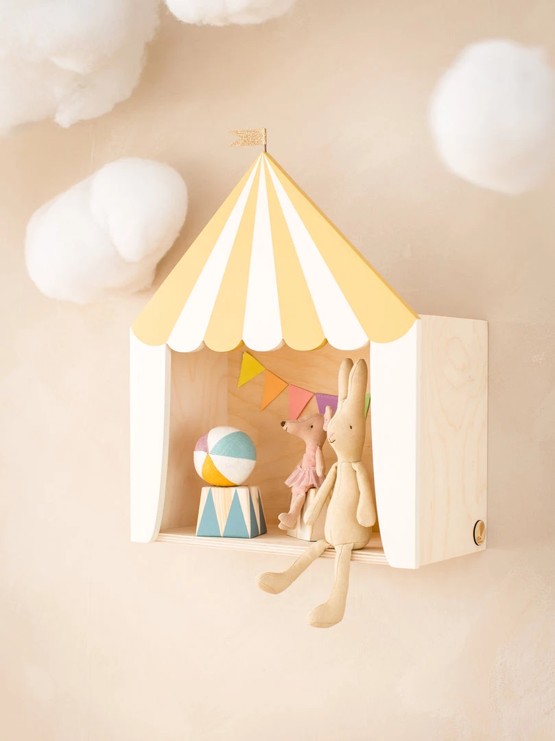 This classic Up Warsaw wooden circus shelf not only holds your child’s beloved teddies, books and more but most of all it creates magical feature on the walls of your child’s room.