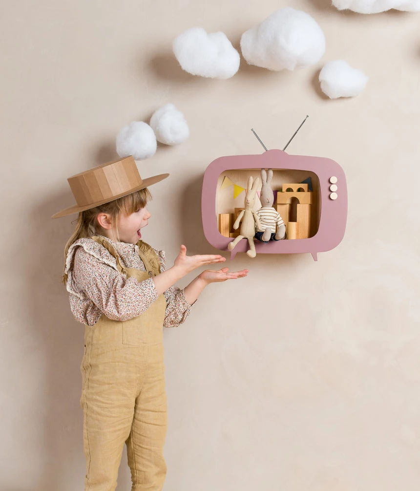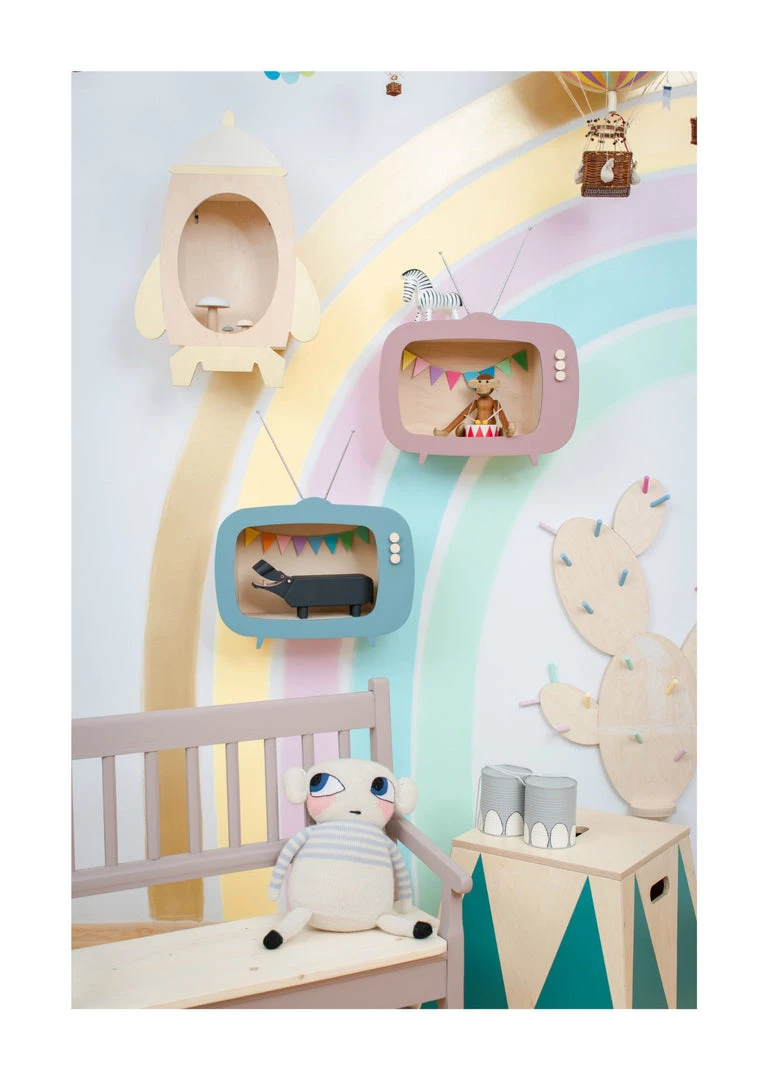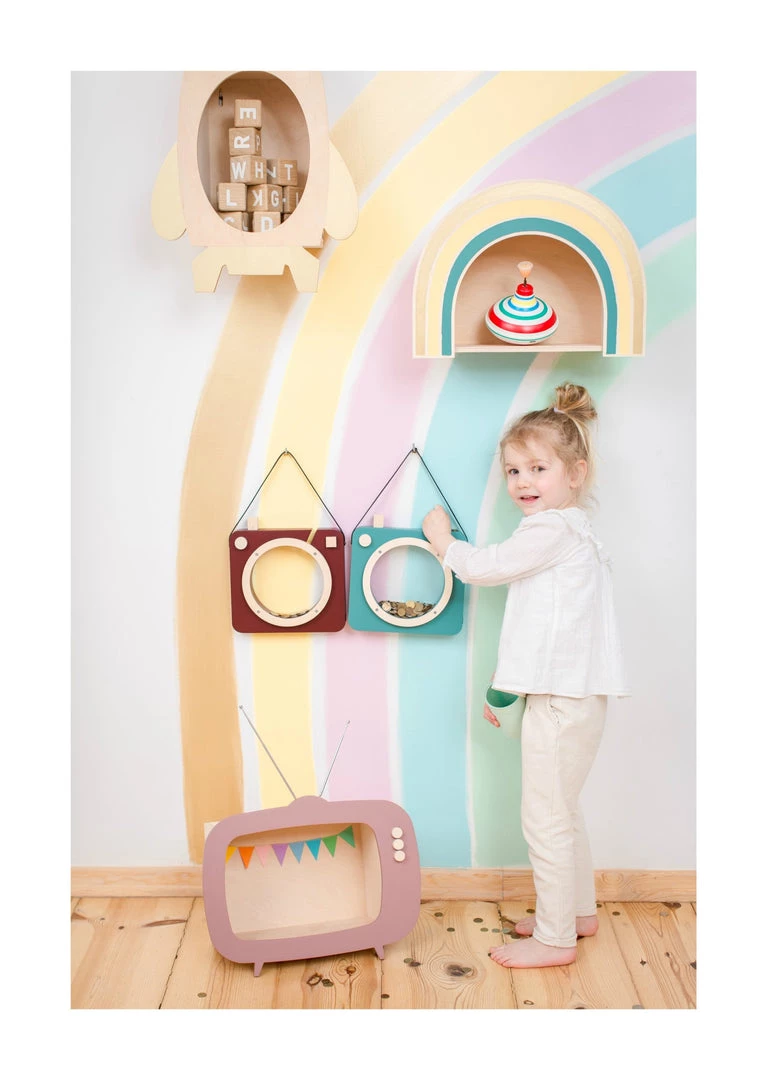 This beautiful crafted wooden shelf will be a real feature piece on your child’s room wall and will add a real touch of magic and imagination to any nursery design project.