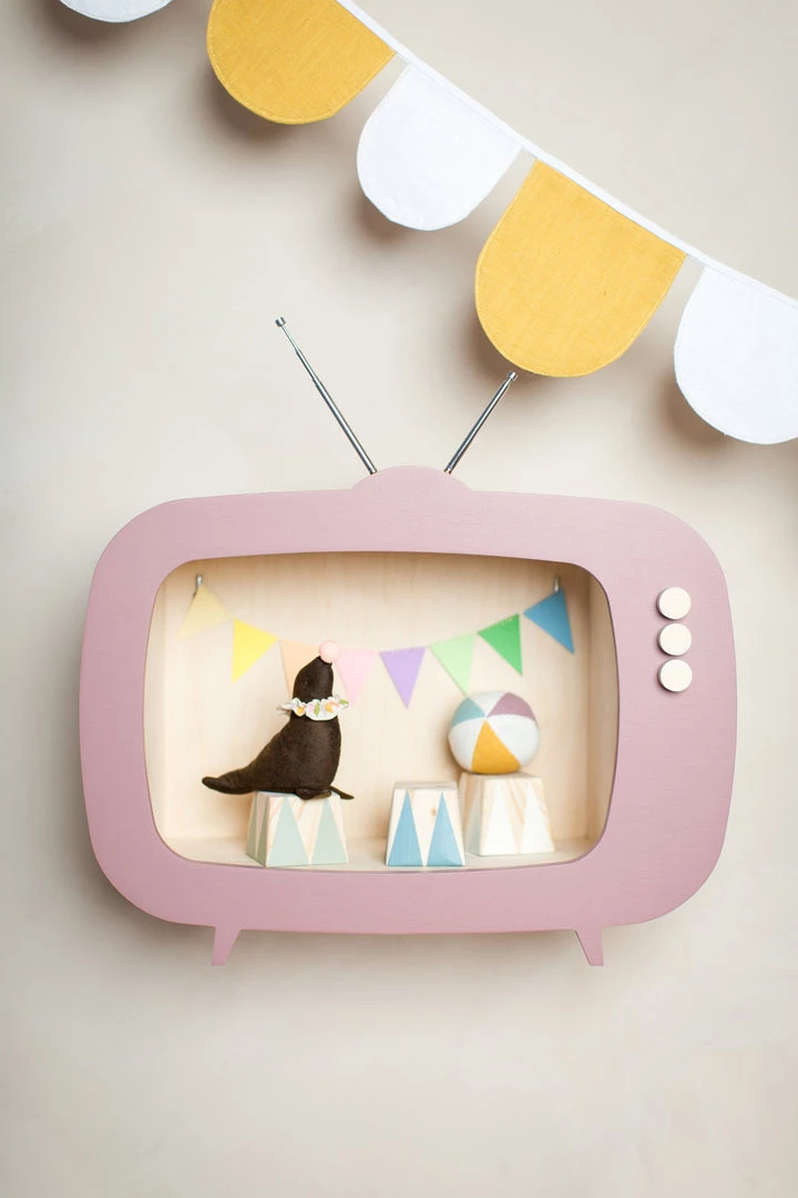 With this super retro style pink wooden TV from Up Warsaw you can now direct your own film or show with your favourite toy characters – Its your very own Toy Story!