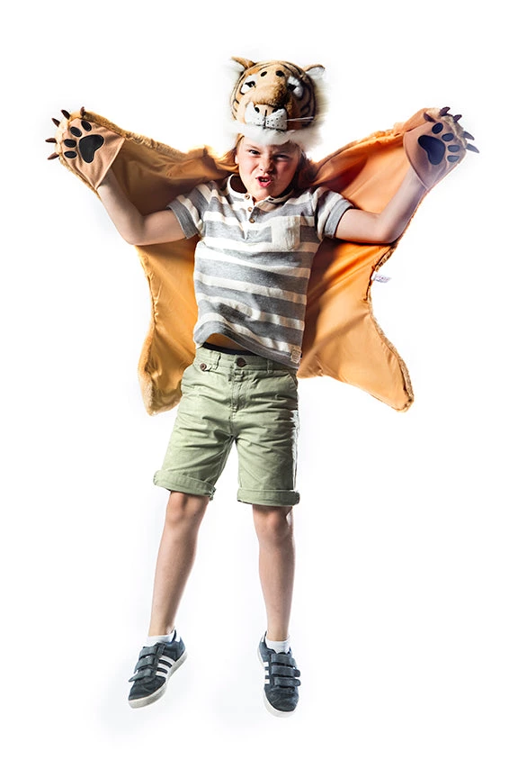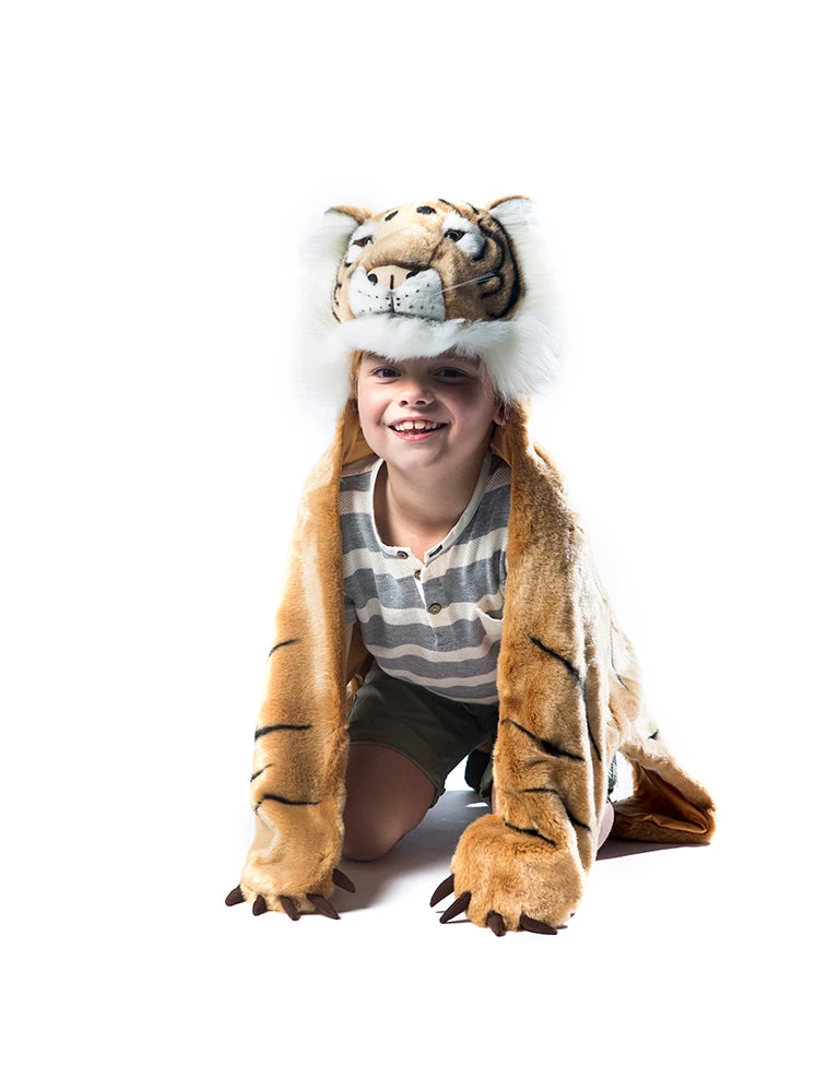 Your kid will love getting dressed as a tiger…This super soft animal costumes will ensure hours of fun! The plush head sits on top of a child’s, the body drapes over their shoulders – their hands go in the front paws.
