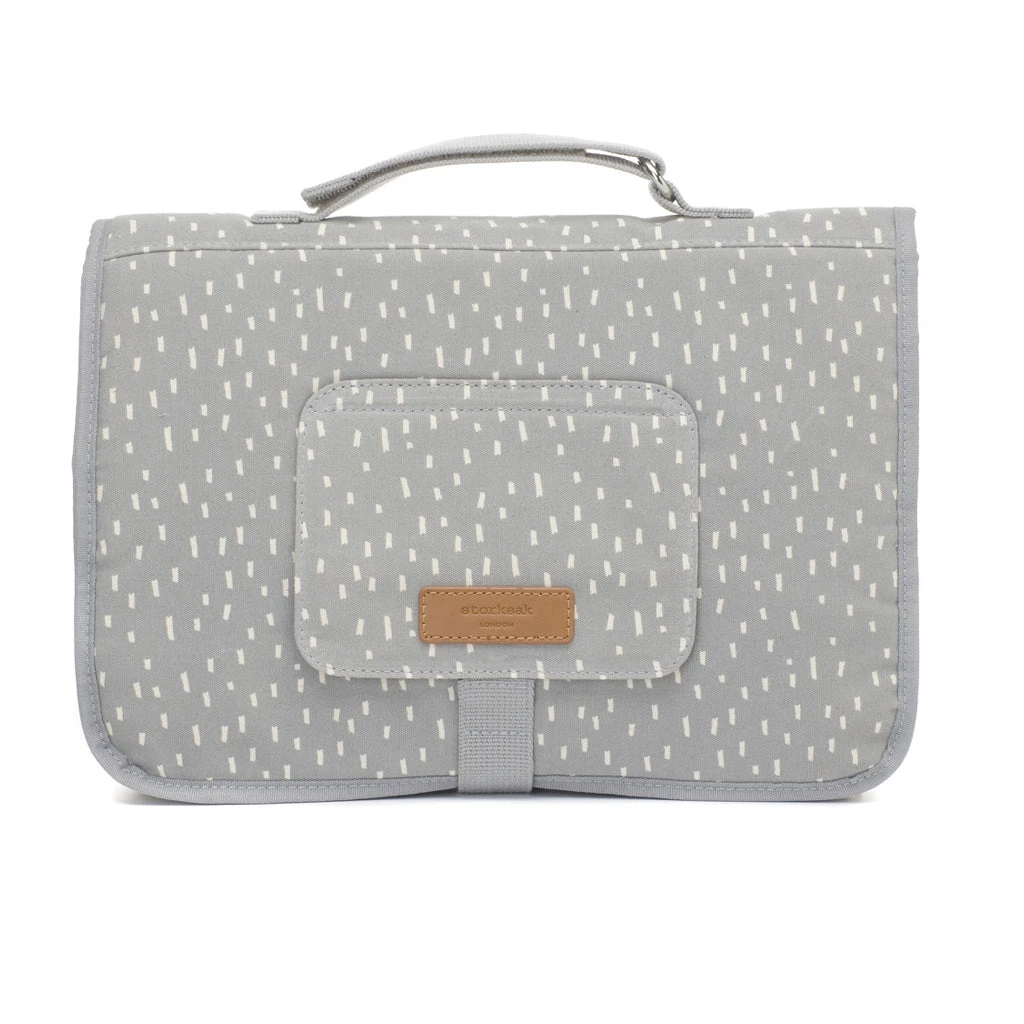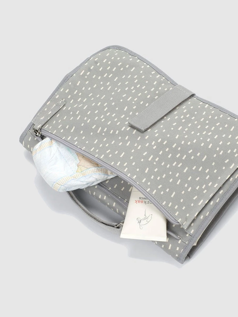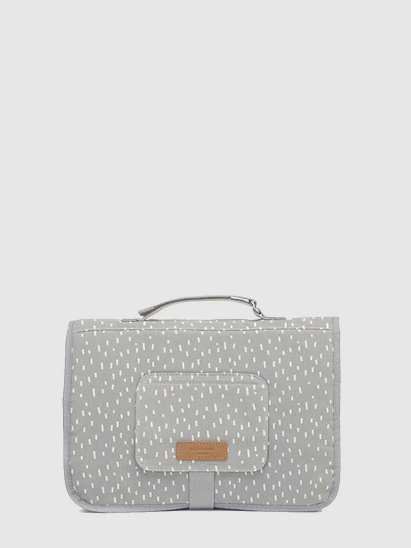 Organic cotton grown without chemicals is used for this handy change station, so you know every nappy change is on the most natural surface. A wipes dispenser pocket and large zipped pocket allows you to easily store everything needed for nappy changes. Ideal to slip inside your changing bag or attach to your pram with the stroller bar attachment on the grab handle.