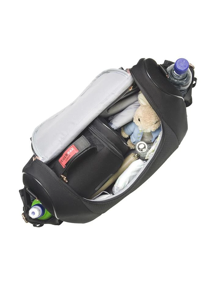 - Insulated food and bottle bag (FAB bag) which keeps contents warm or cool for up to four hours and features a grab handle stroller attachment