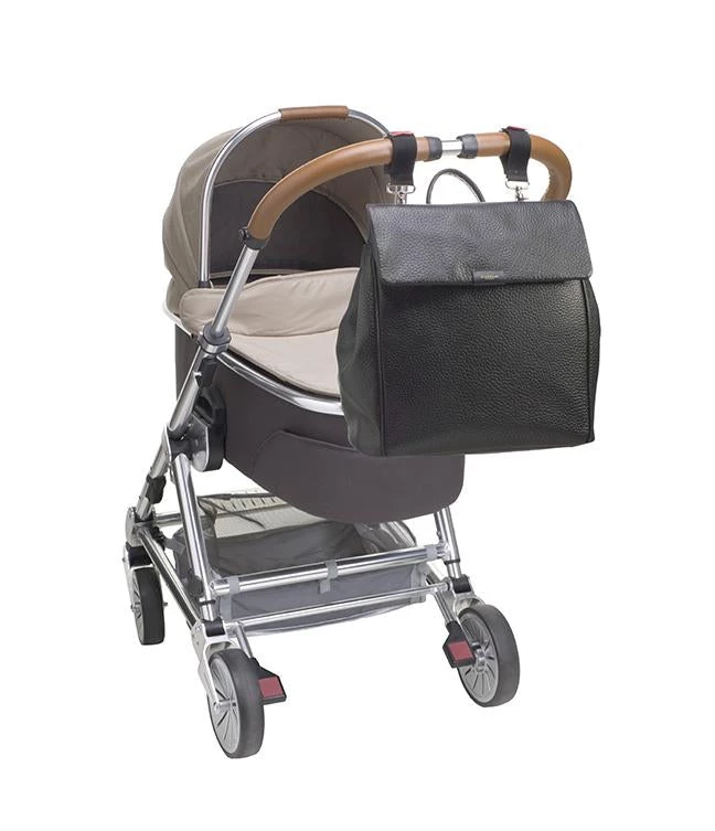 - Detachable long shoulder strap with patented integrated stroller straps.