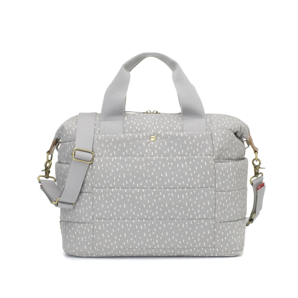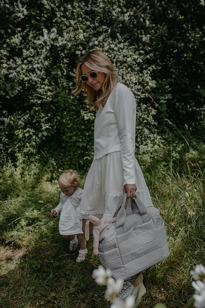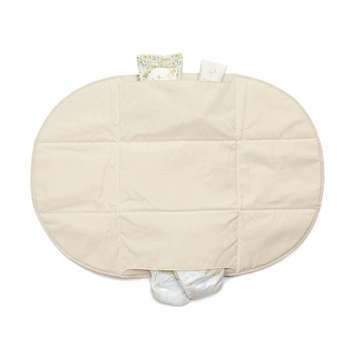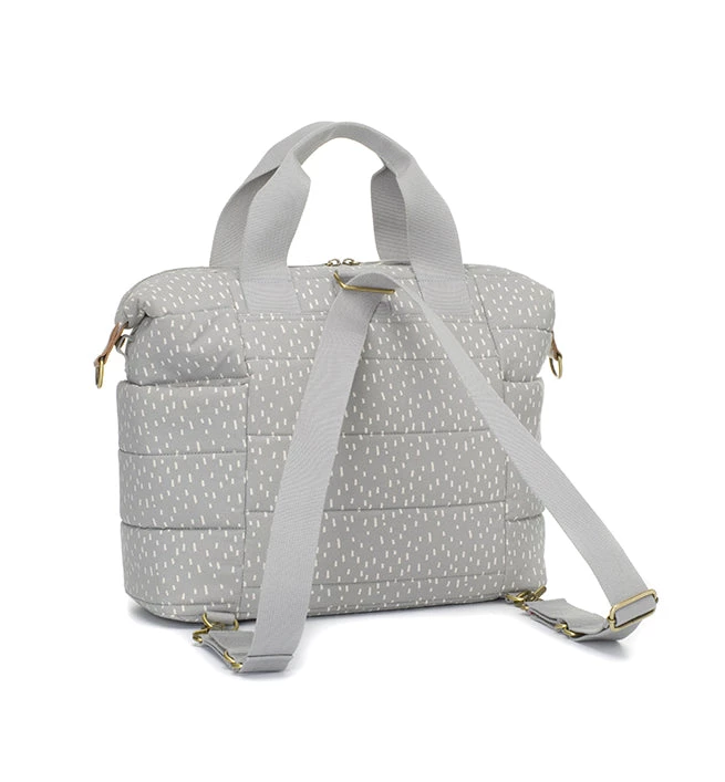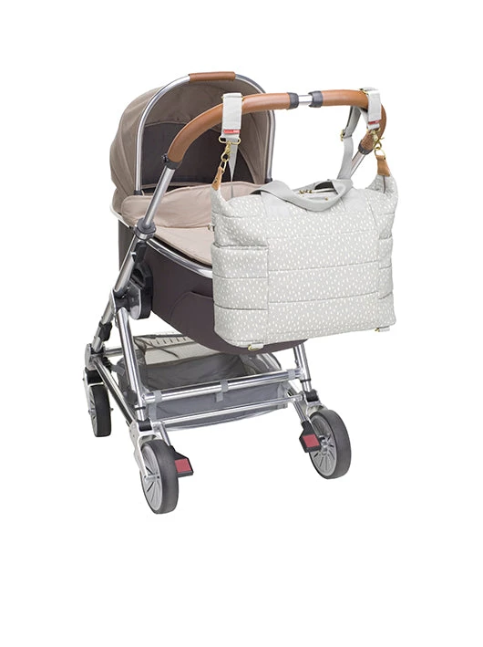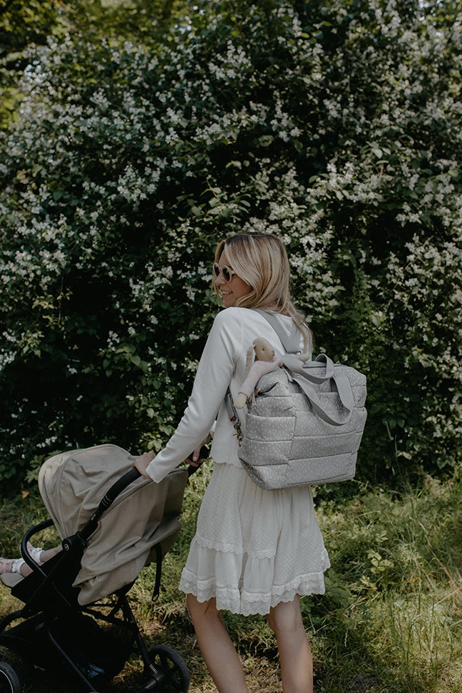 The purest choice for you and your baby. Organic cotton manufactured without chemicals is used on the outside of the bag as well as the changing mat, so you know every nappy change is on the most natural surface. The soft aesthetic of the bag compliments its honest origins, while the convertible strap and spacious internal ensures this baby bag has all the function modern parents need.
