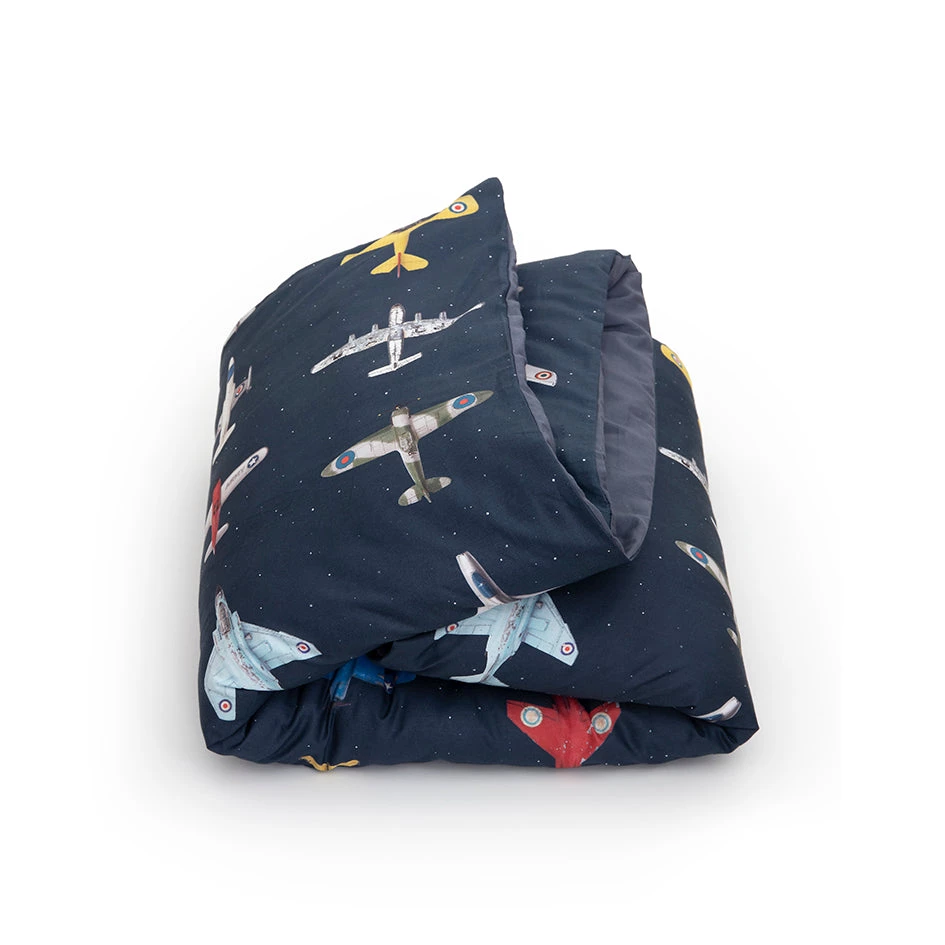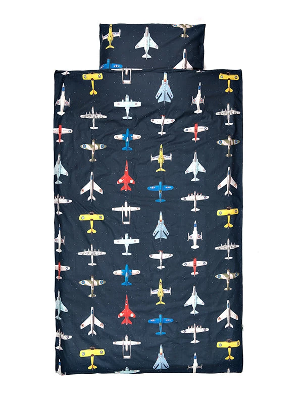 Studio Ditte duvet cover with a sky full of vintage toy airplanes on a dark blue background , this cool bedding is ideal for a room for young adventurers. Your child will dream wonderfully under this beautiful children’s bed linen.