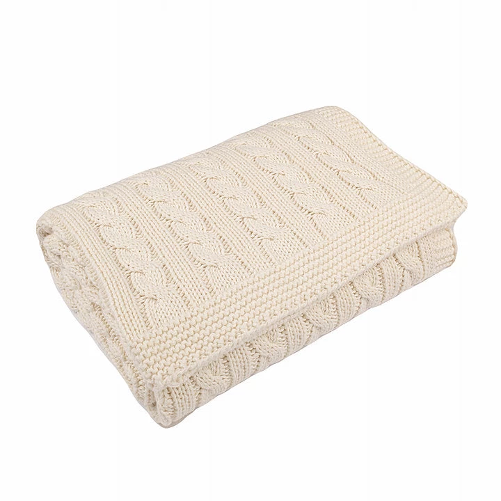 These beautiful pure cotton cable knitted blankets are super soft and ideal for prams, cots and make a lovely nursery accessory that can be used for years to come