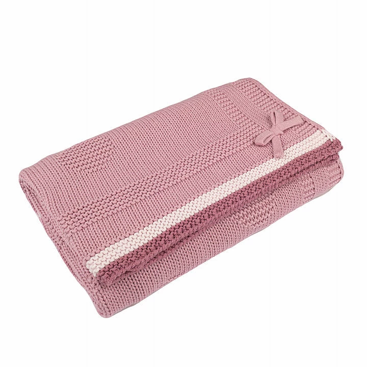 These beautiful pure cotton Spot knitted blankets with bow detail are super soft and ideal for prams, cots and make a lovely nursery accessory that can be used for years to come