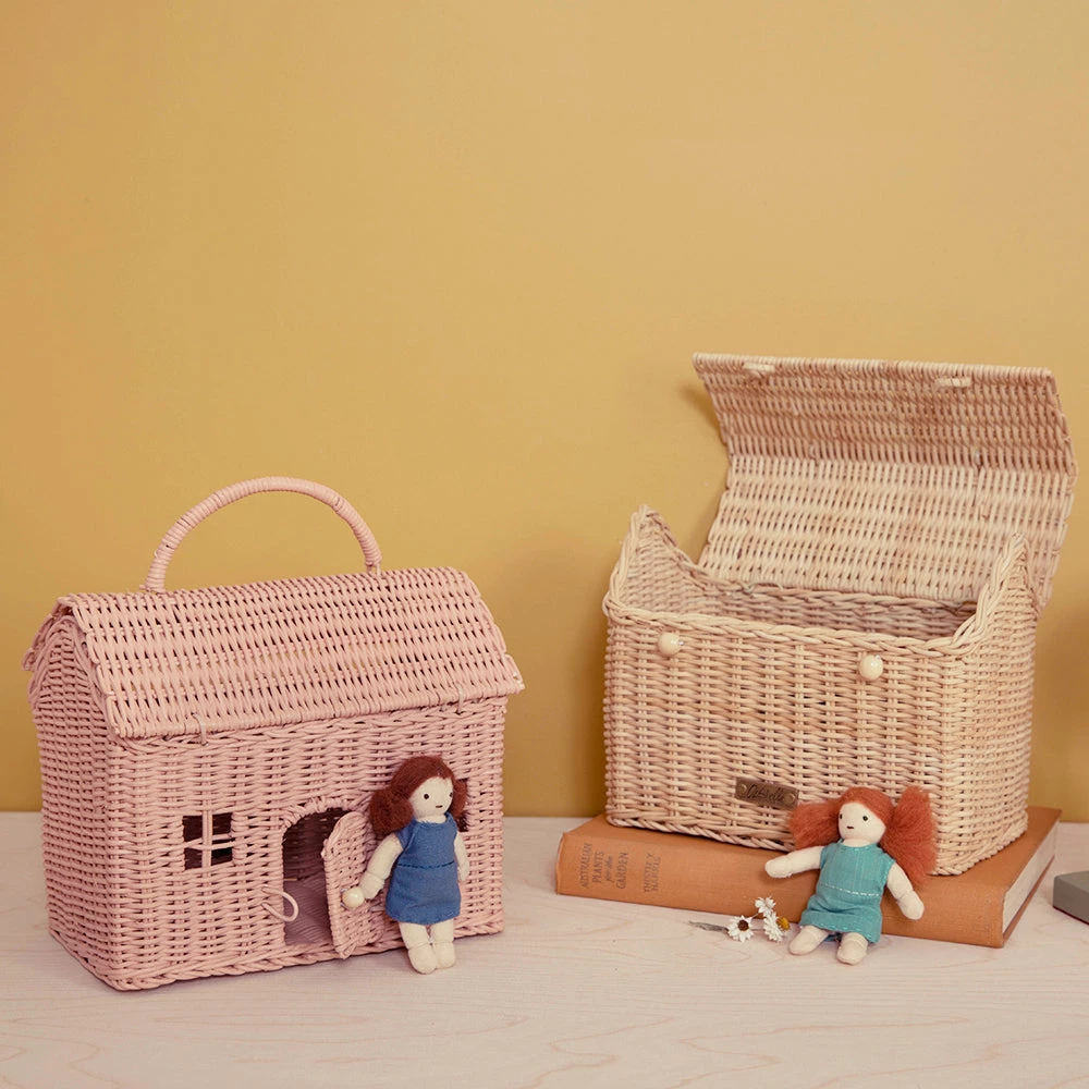 A home that travels with you wherever you go, the Casa Clutch is the perfect toy house/ basket. With a generous size, sturdy wicker handle and opening at the roof and door, kiddos can carry their most loved treasures with ease.