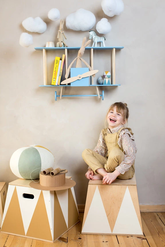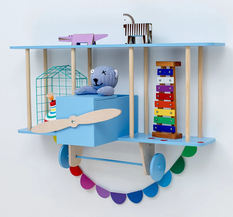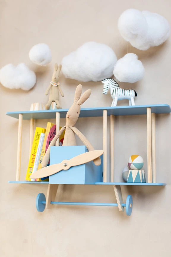 This stunning feature Bi-Plane wooden shelves from Up Warsaw has a cockpit for a small beloved teddy and lots of space for all your goodnight books as well as pens, teddys and other items.