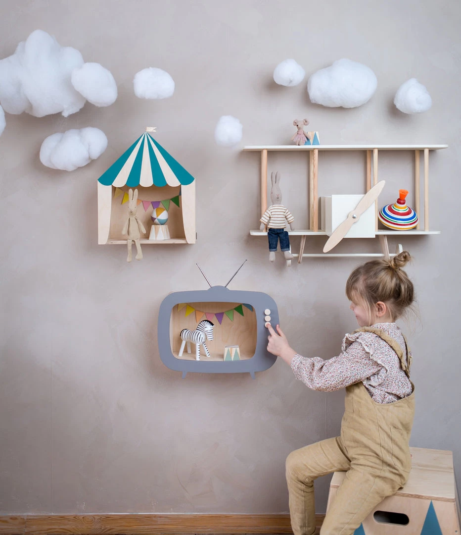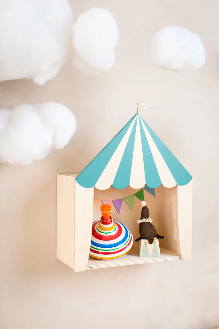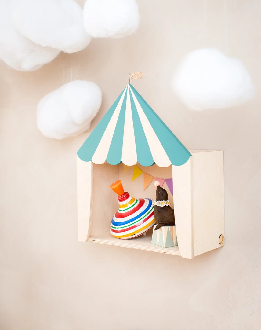 This classic Up Warsaw wooden circus shelf not only holds your child’s beloved teddies, books and more but most of all it creates magical feature on the walls of your child’s room.