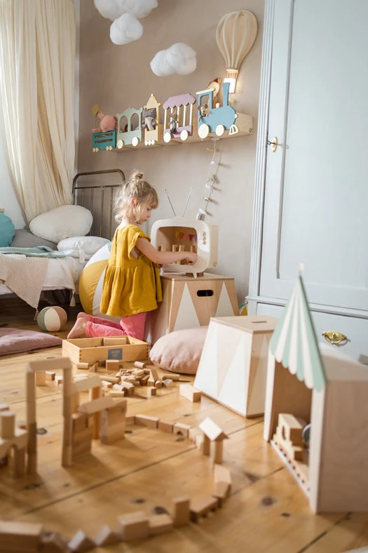 This beautiful crafted wooden shelf will be a real feature piece on your child’s room wall and will add a real touch of magic and imagination to any nursery design project.